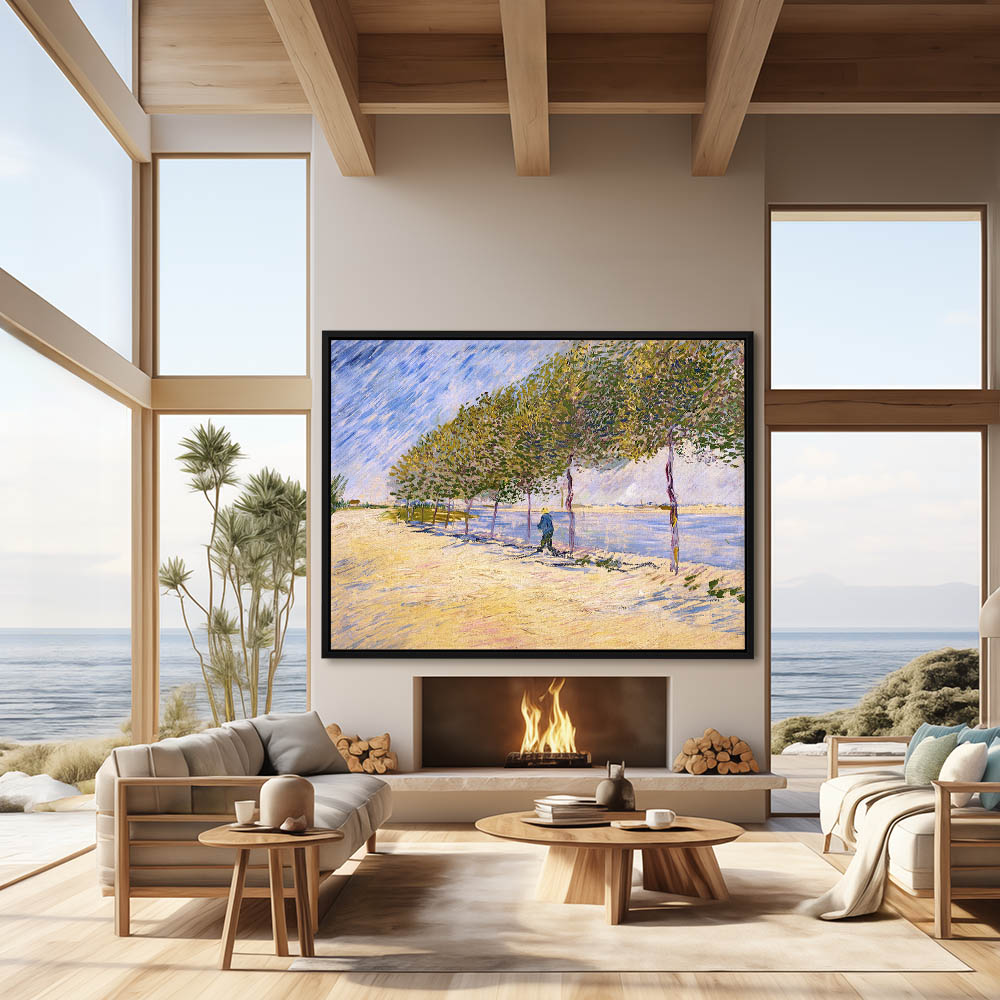 From $29.97Impressionist Landscape Painting of a Shoreline with Figure and a Row of Trees