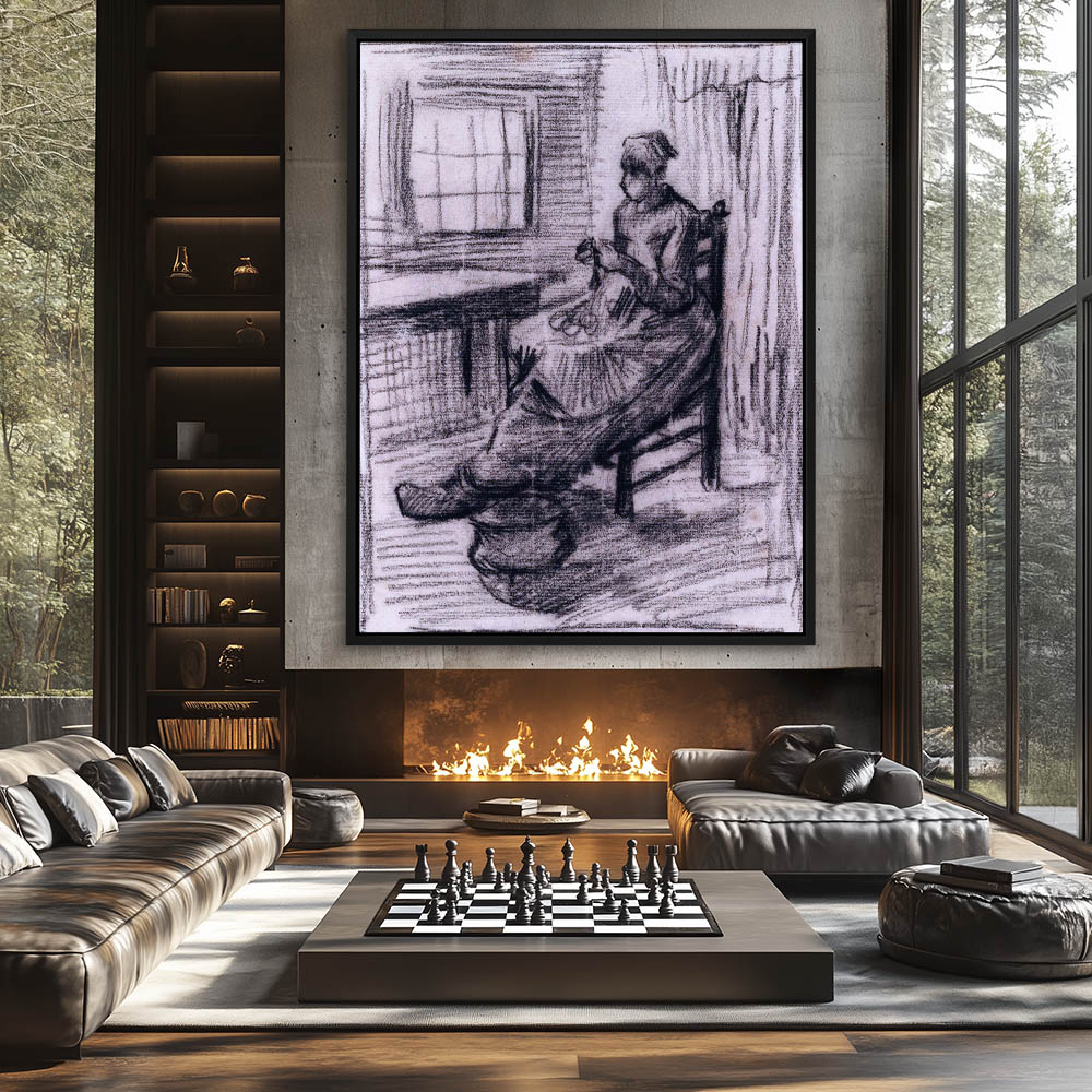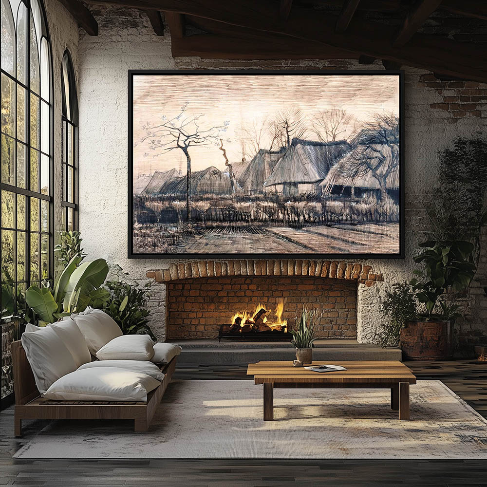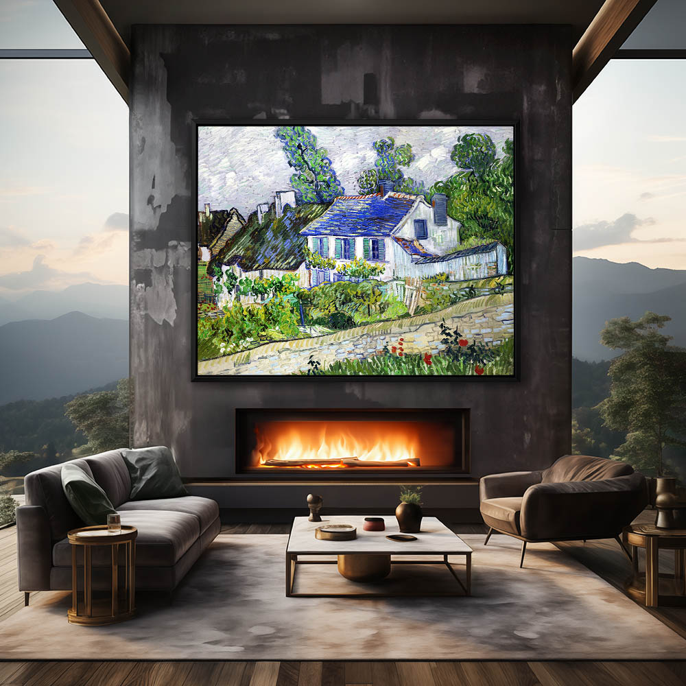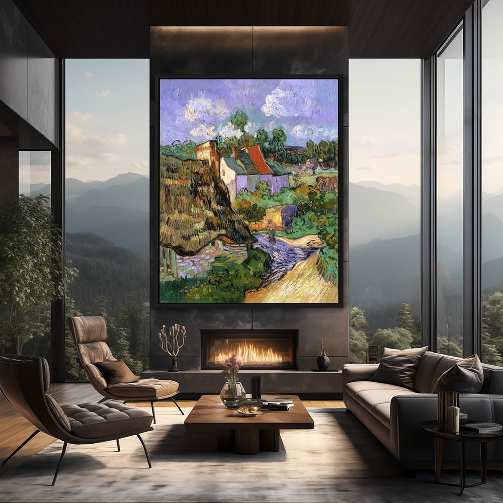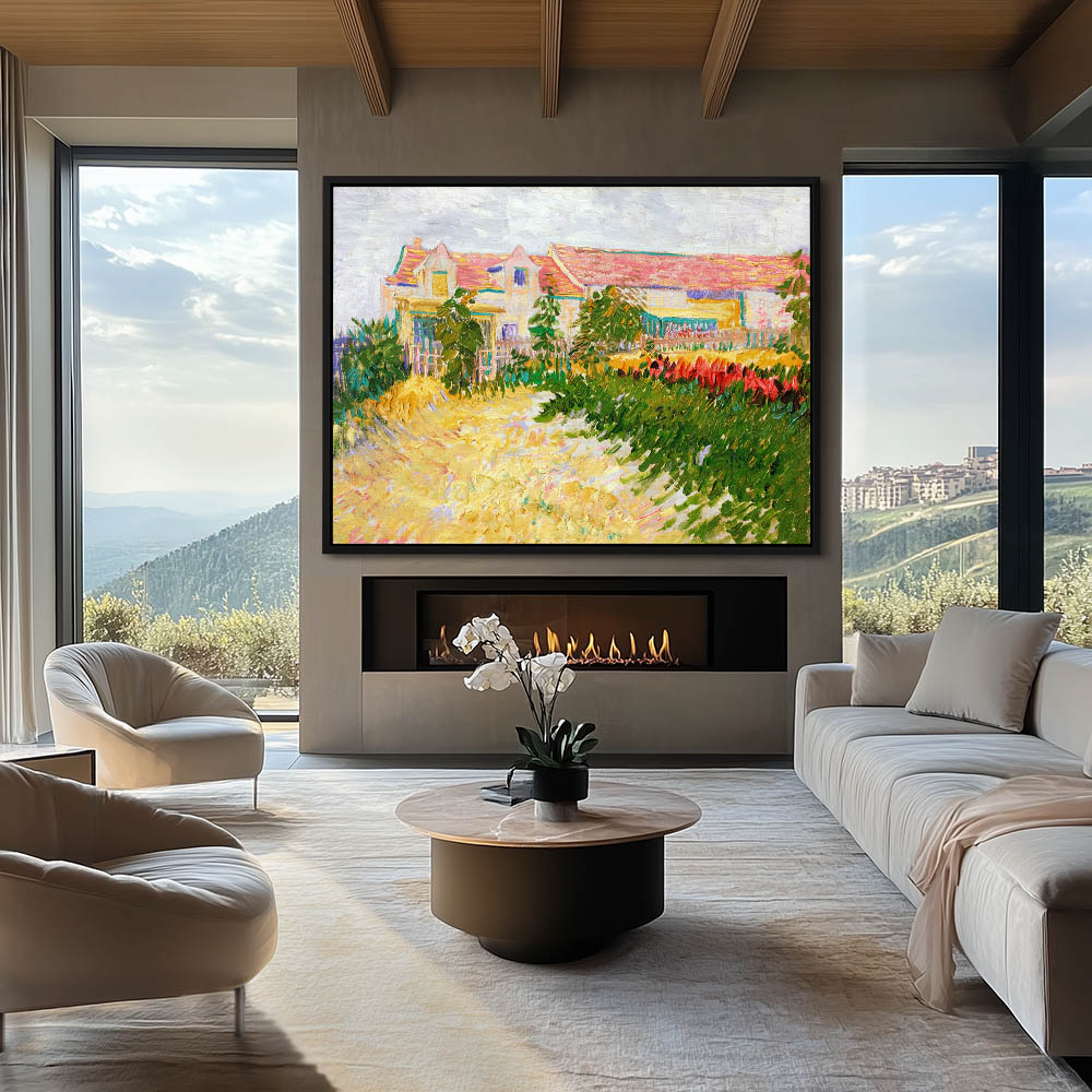 Impressionist Abstract Landscape Painting of a House with Sunflowers