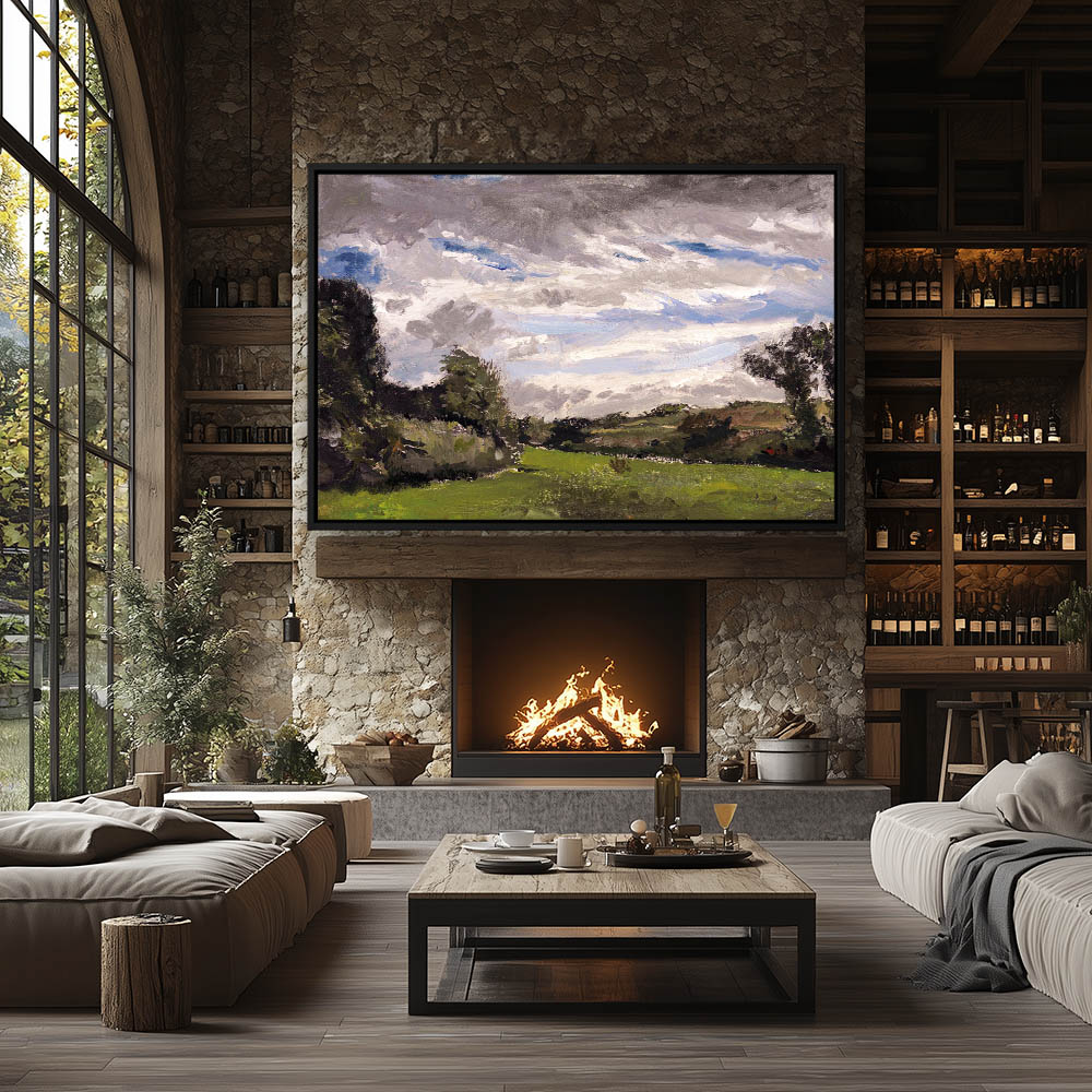 Impressionist Landscape Painting of a Meadow with Trees and Clouds in the Sky