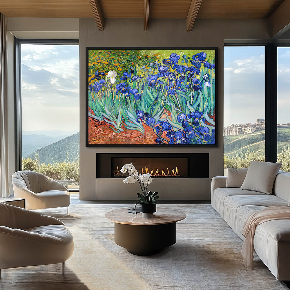 Impressionist Landscape Painting of Irises Growing in the Garden