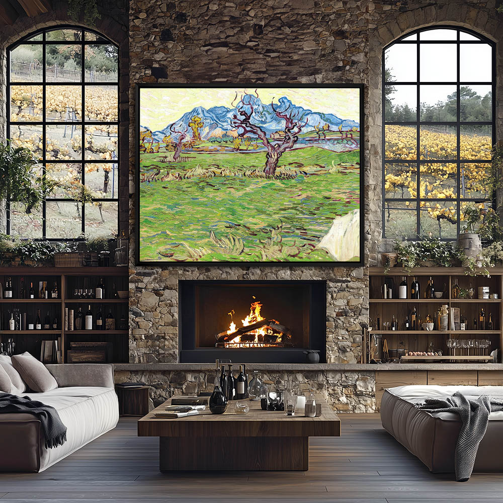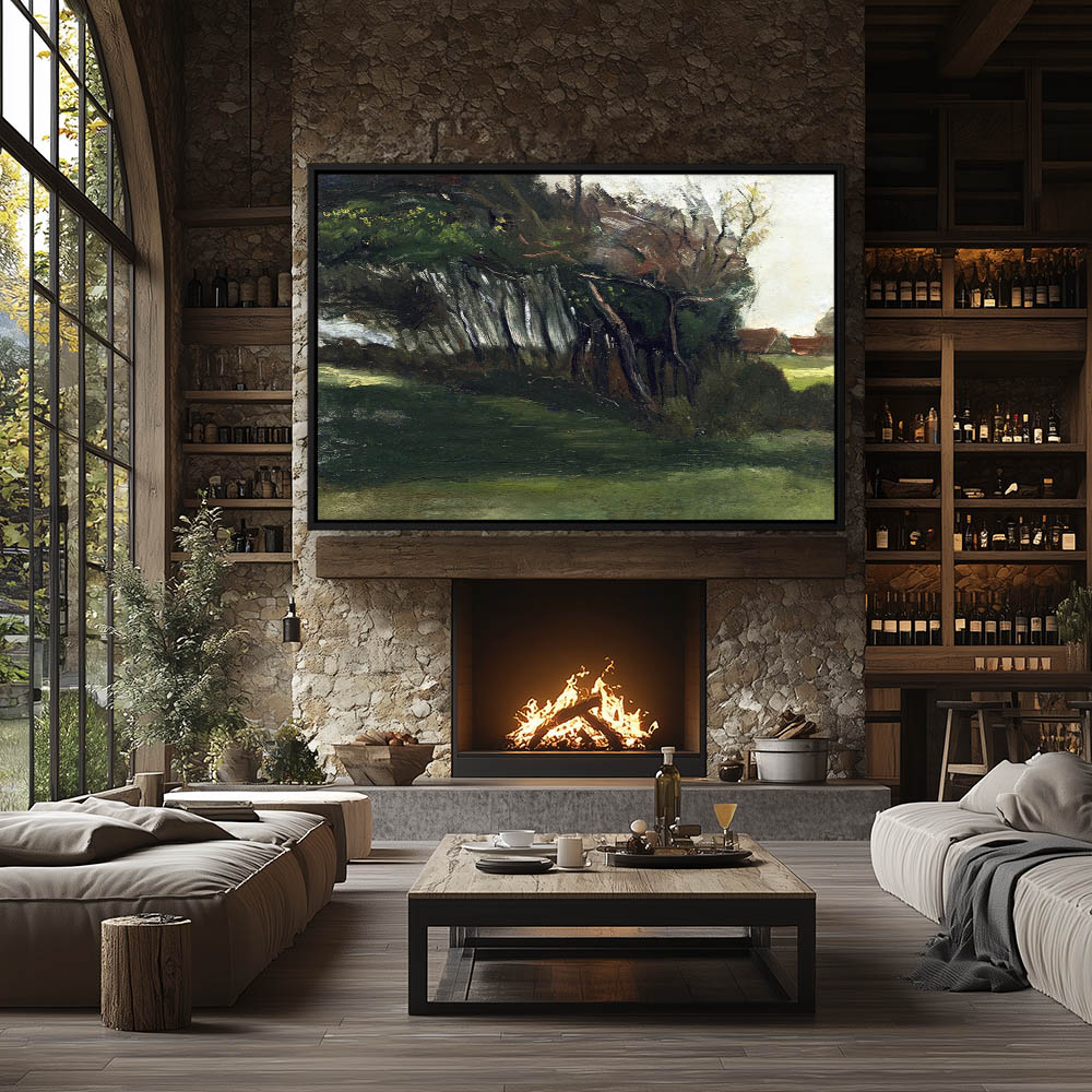 Impressionist Landscape Painting of Trees with Farhouse in the Distance