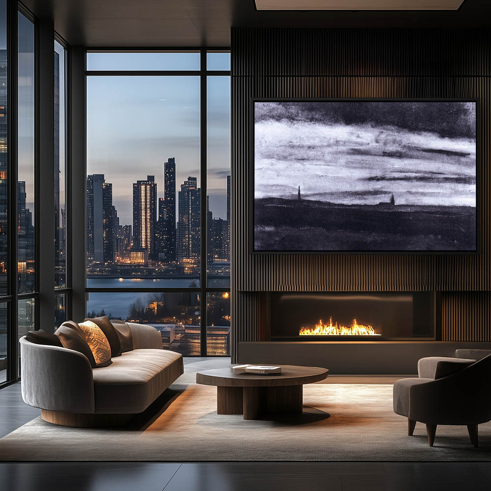 Impressionist Abstract Landscape Painting in Black And White