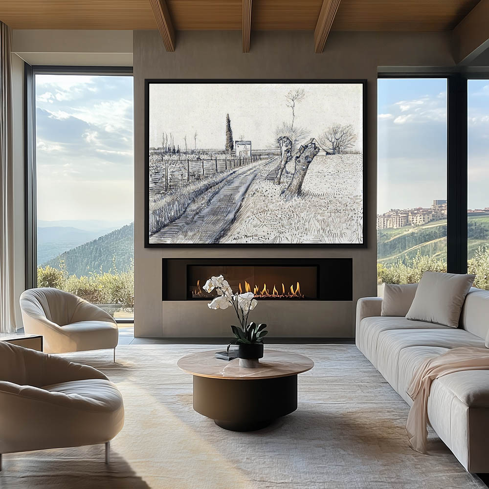 Landscape Drawing with a Path Leading to a Cottage