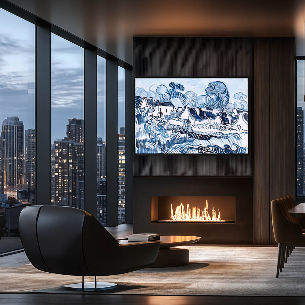 Impressionist Abstract Landscape Painting with Cottages