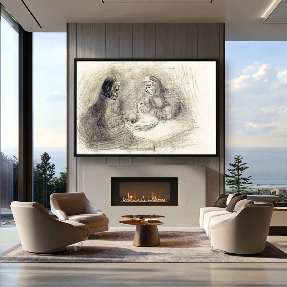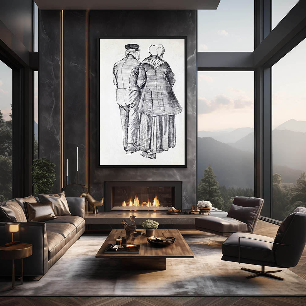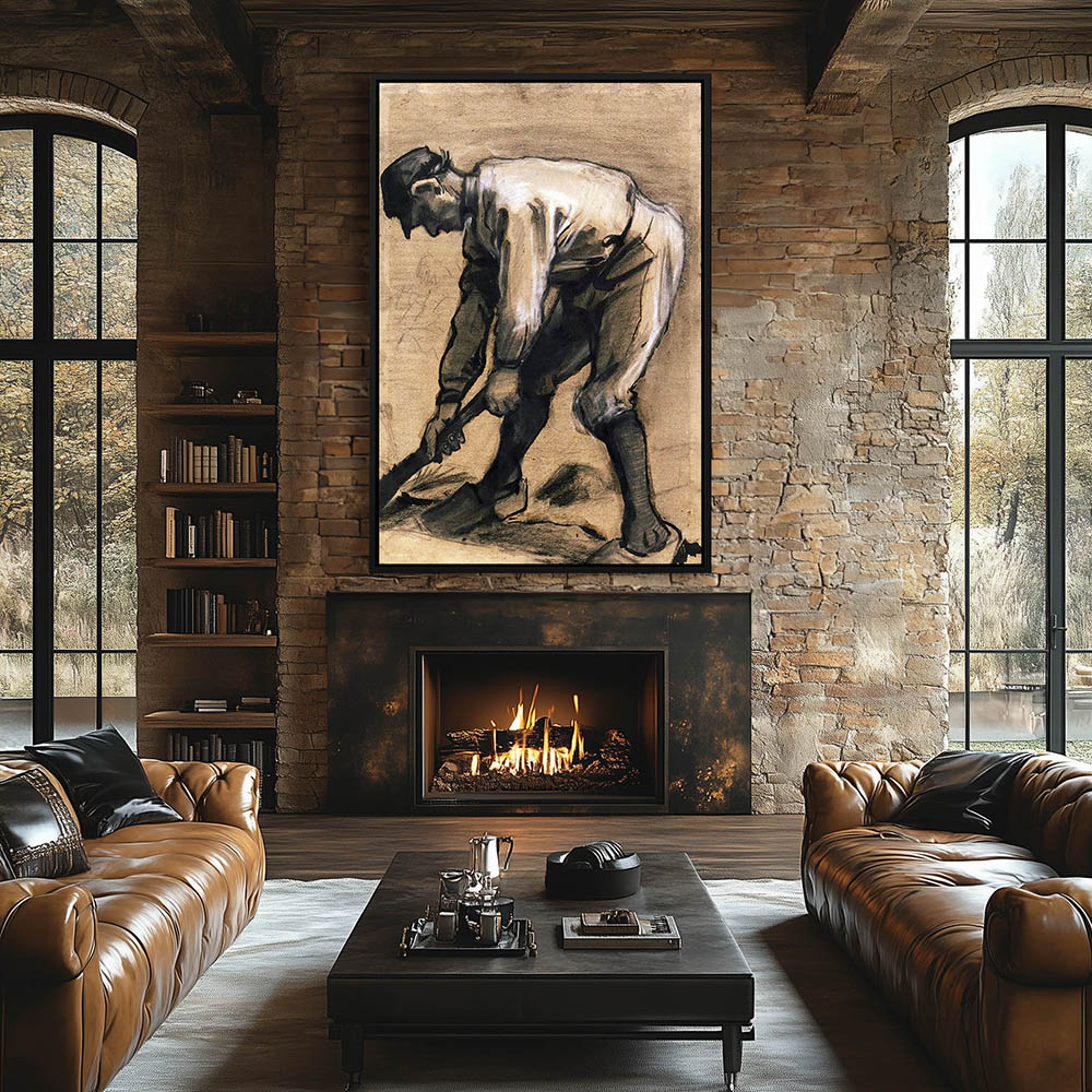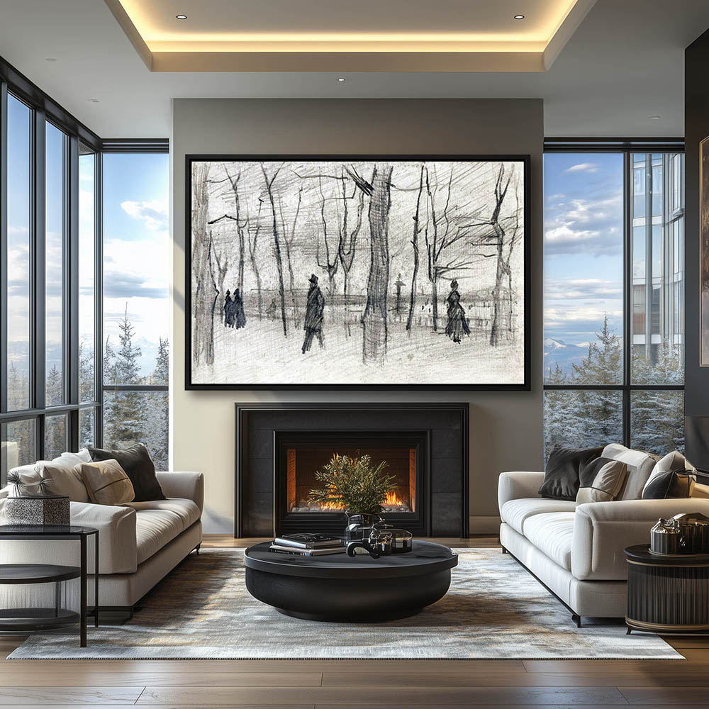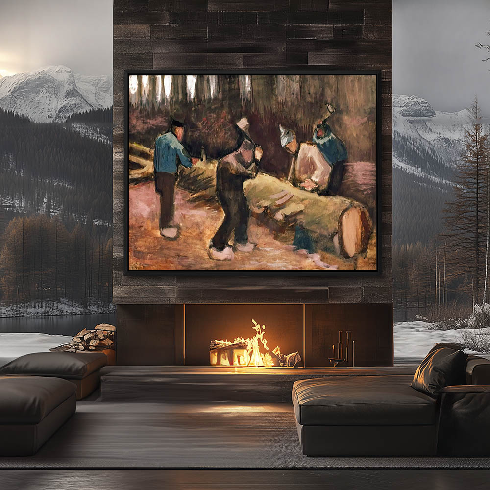 Impressionist Painting of Figures Working as Loggers in the Forest