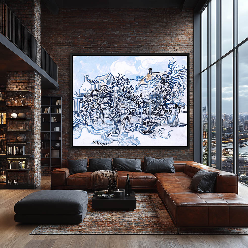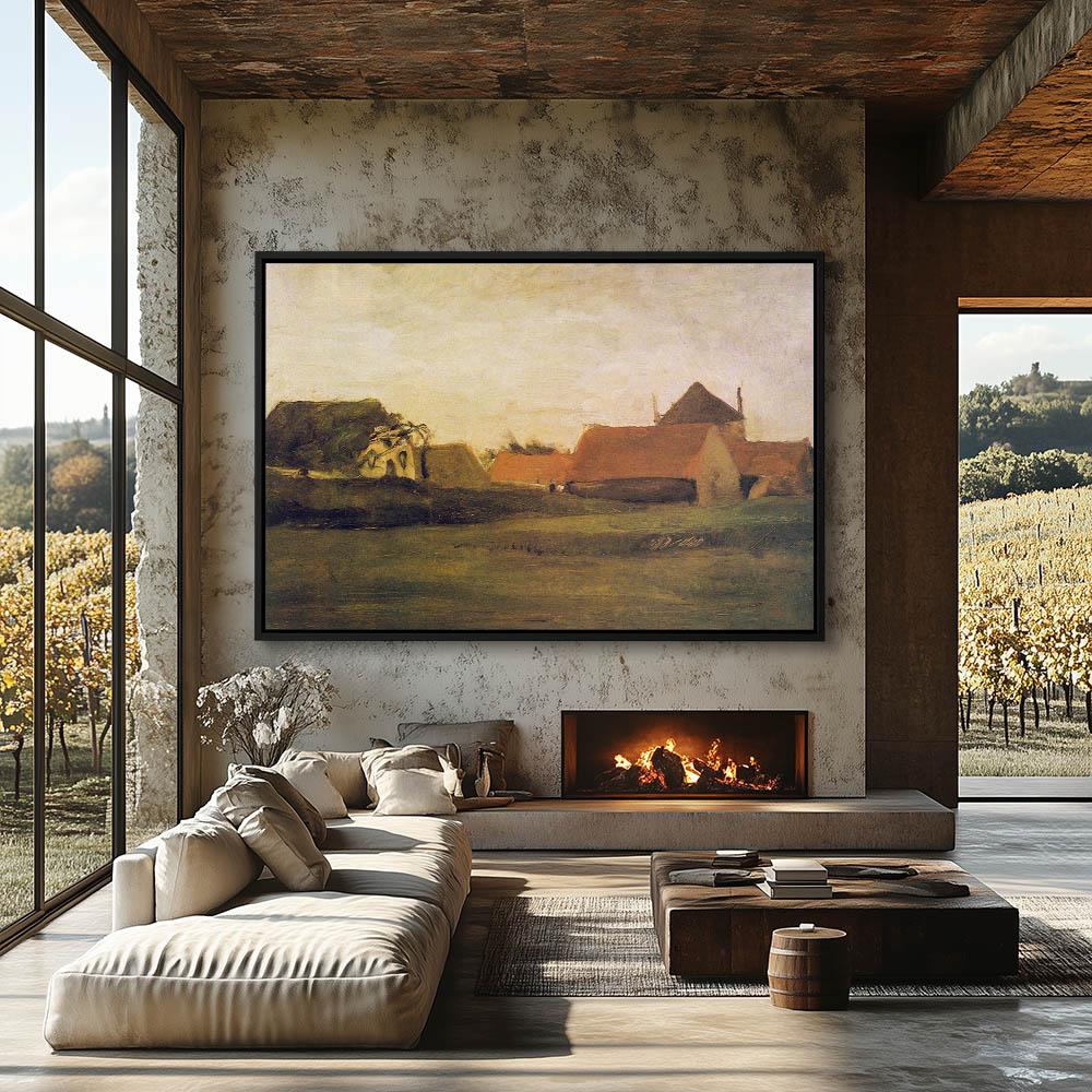 Landscape PAINTING with a Vineyard and Farmhouses