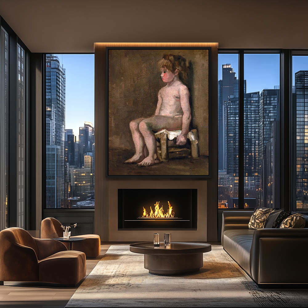 Impressionist Painting of a Nude Child Before the Bath