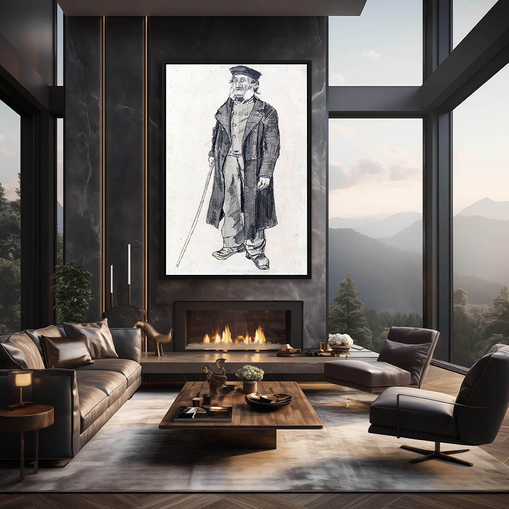Drawing of a Man with a Cane
