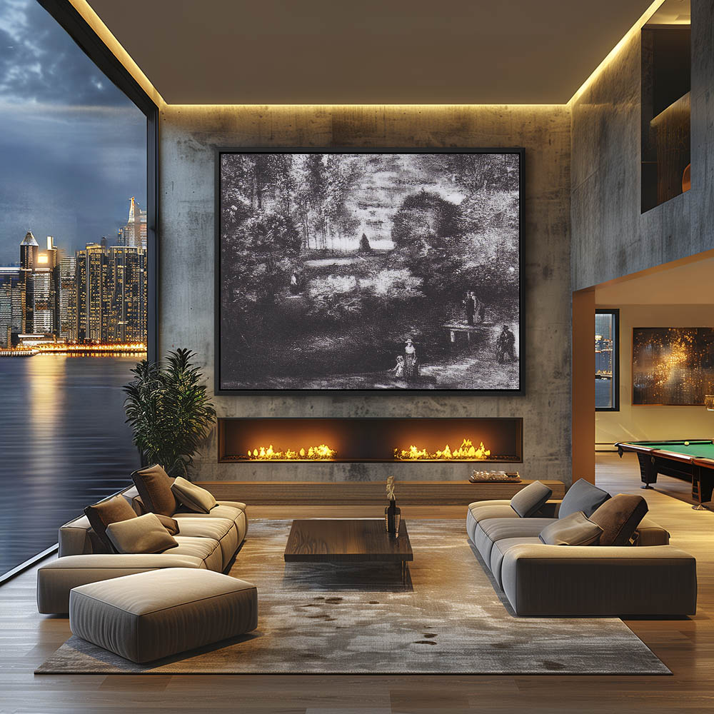 Impressionist Landscape Painting with Figures at the Garden Pond