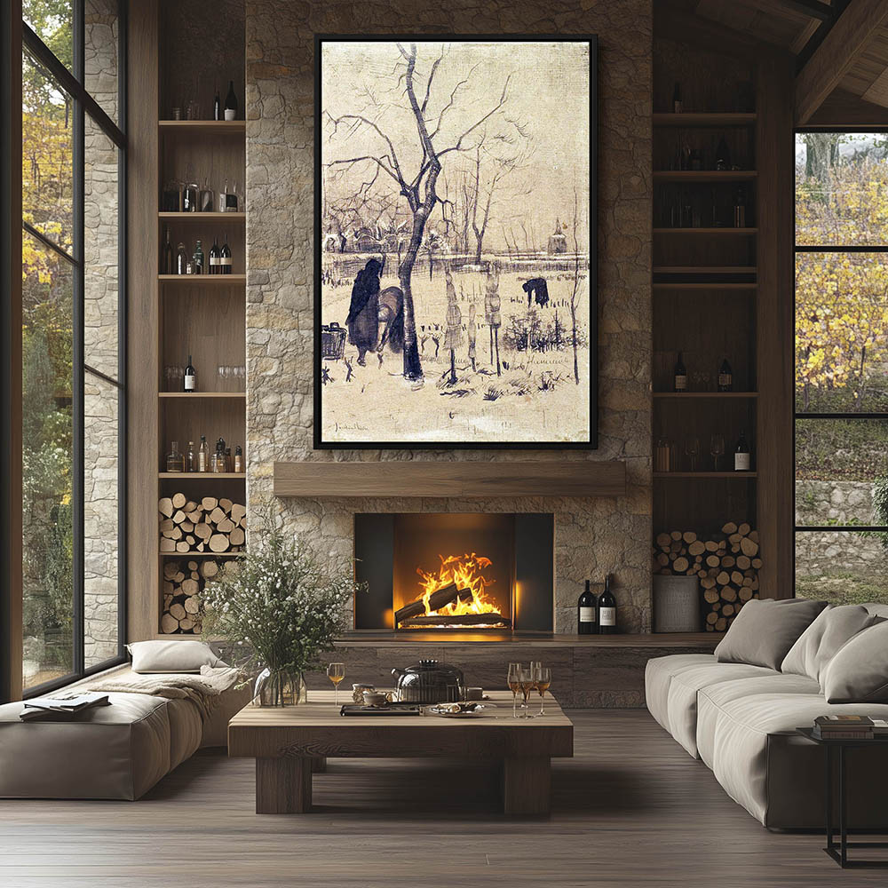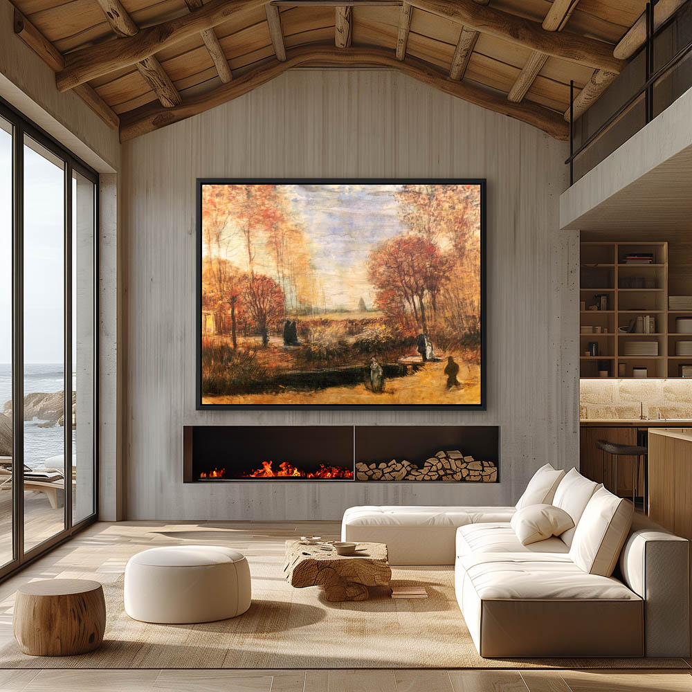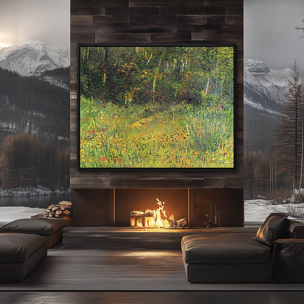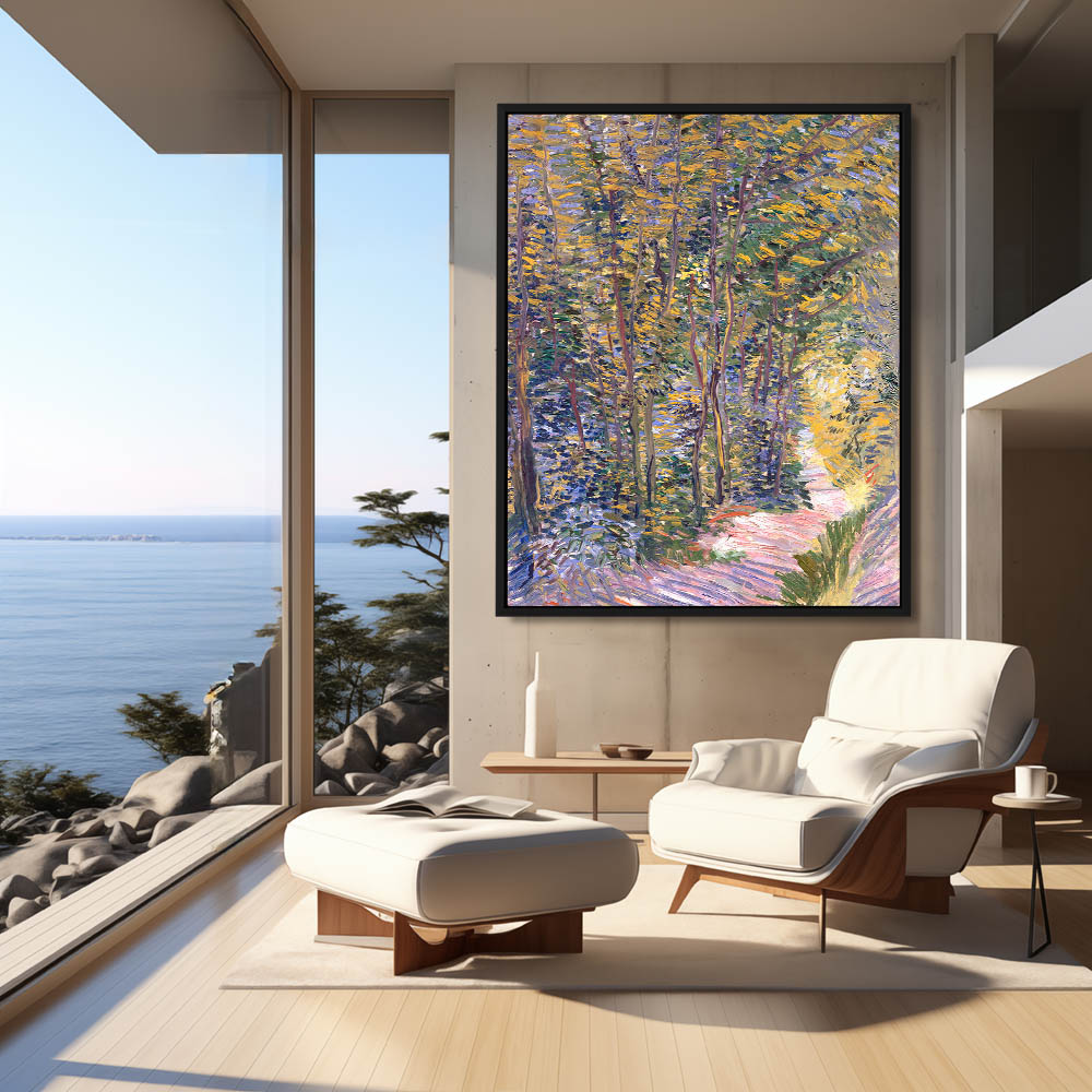 Impressionist Landscape Painting with Figures Walking on a Path in the Trees