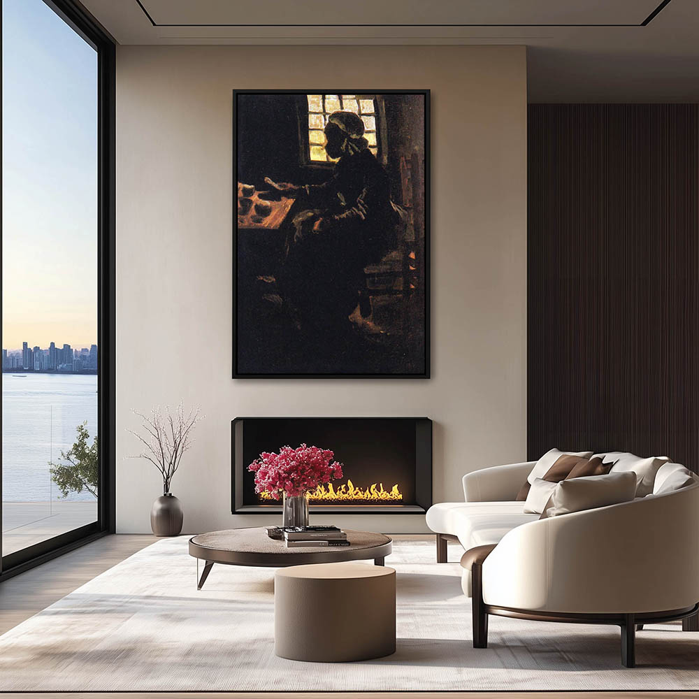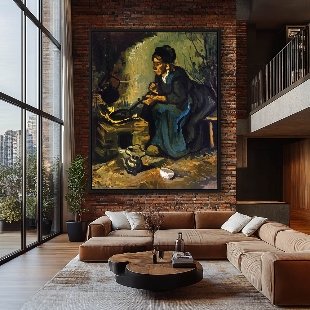 Impressionist Figurative Painting of a Woman Cooking by the Fire