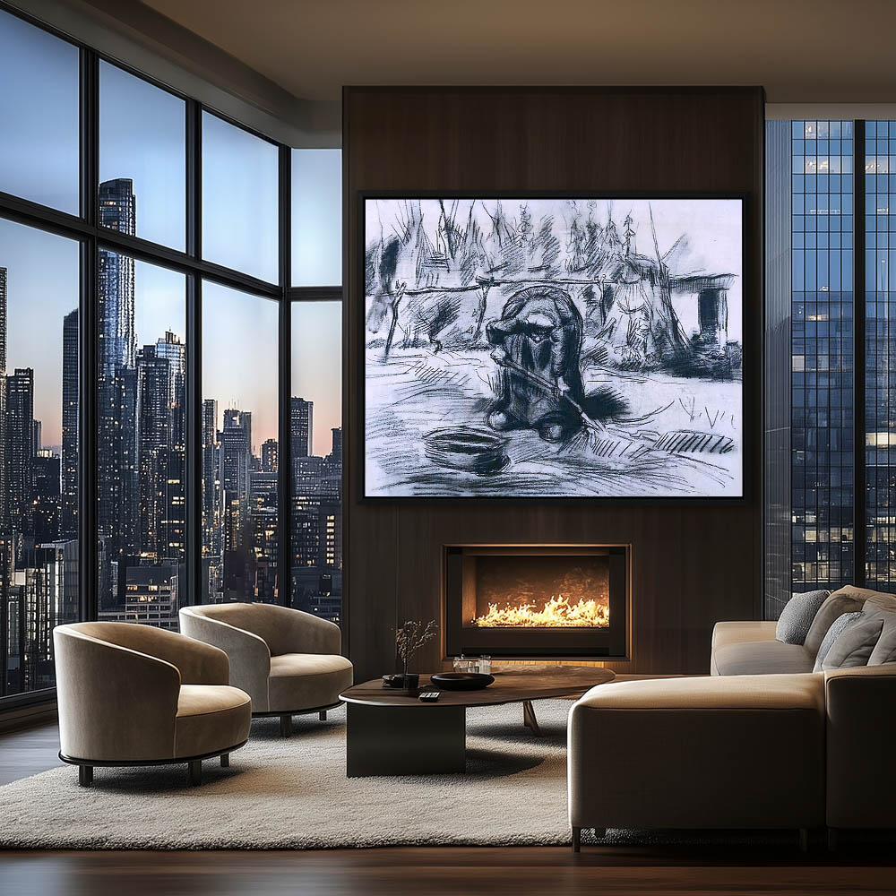 Impressionist Landscape with Figure Digging in the Fields for Potatoes