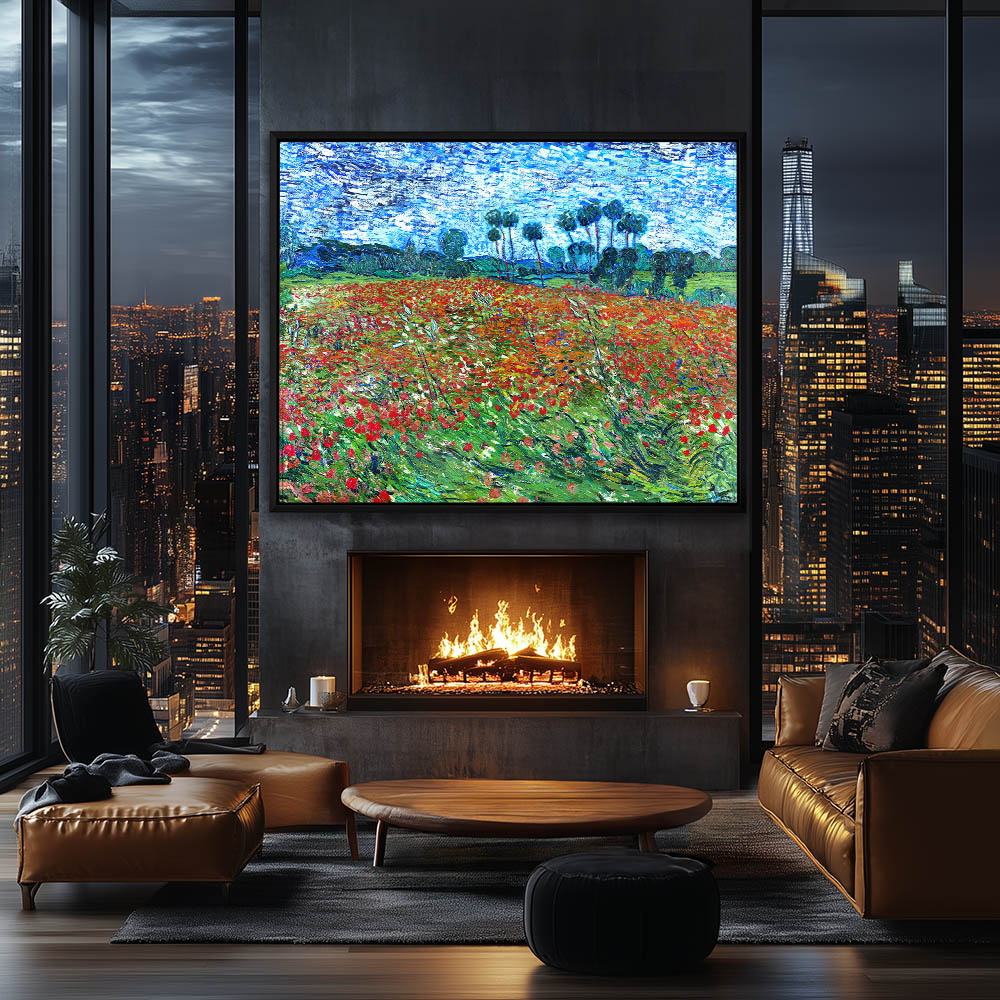 Impressionist Abstract Landscape Painting of a Red Poppy Field