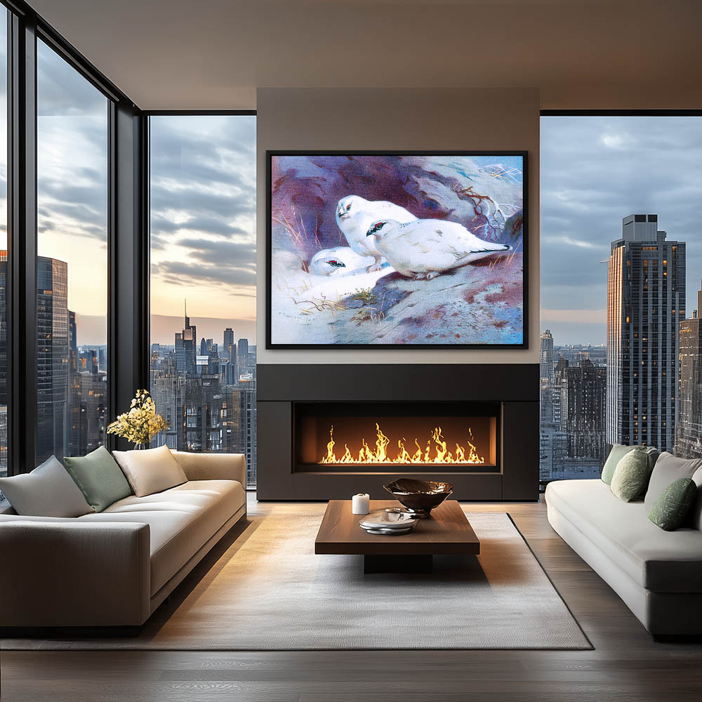 Painting of Ptarmigan Gamebirds in the Snow