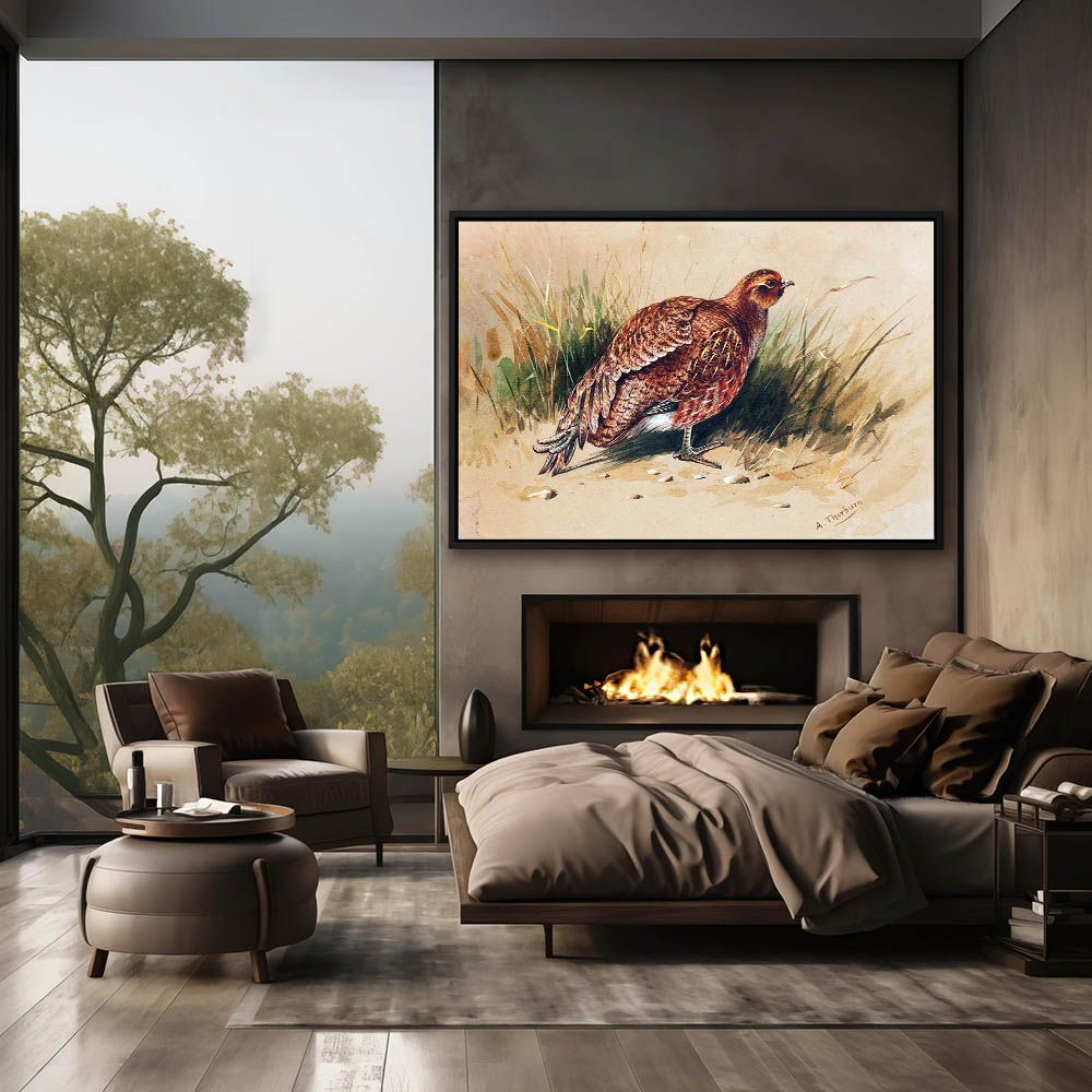 Painting of a Willow Ptarmigan in the Grass