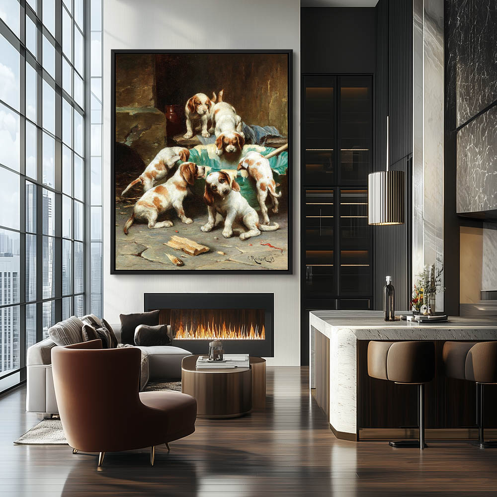 Puppies tugging at the tablecloth, a tea kettle on the verge of falling off, bread crumbs on the floor already.