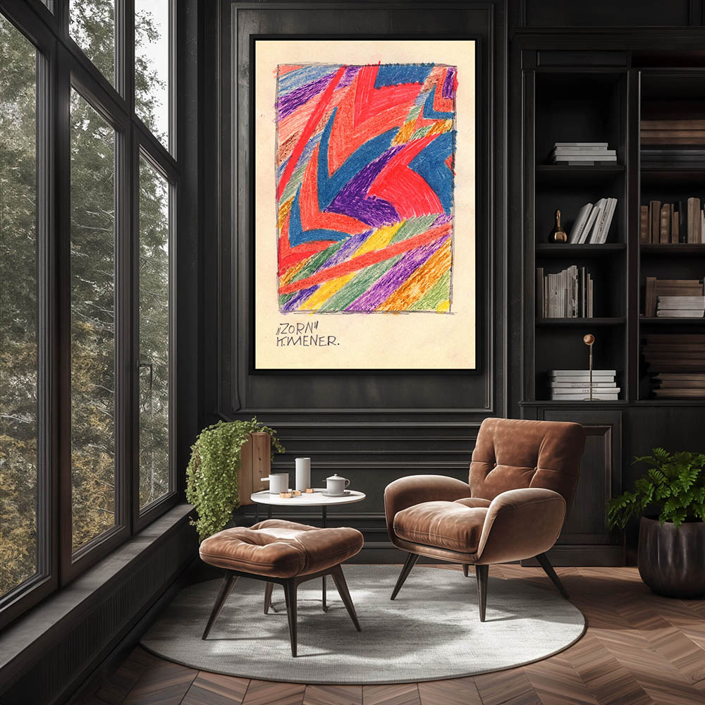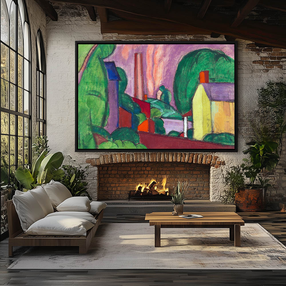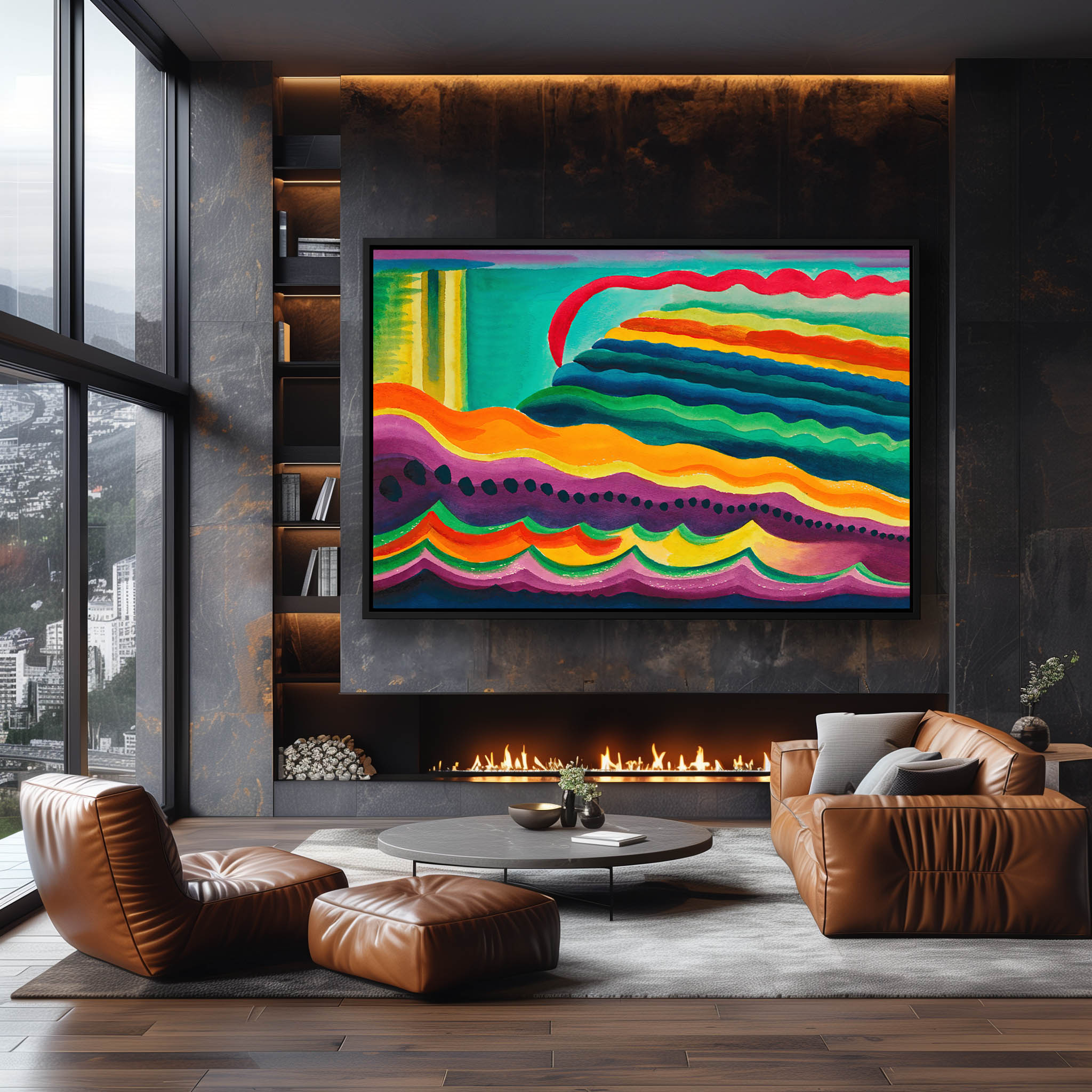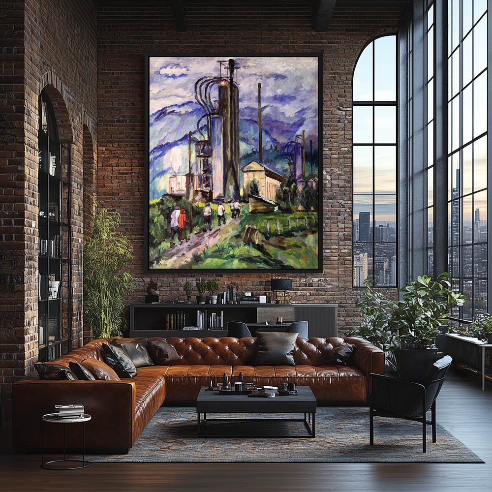 Impressionist Abstract Landscape Painting of Farmland and Distance Mountains