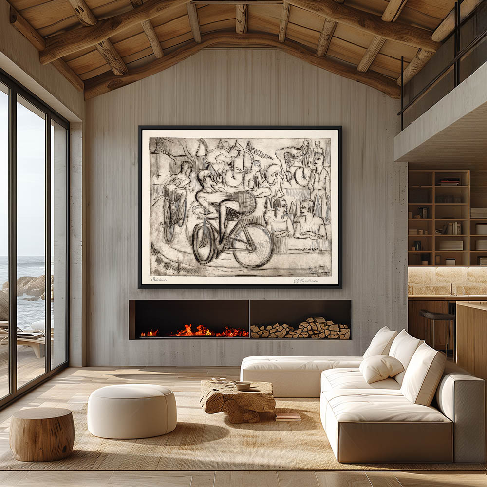 Sketch of a racehorse being lead to the tract after weigh in