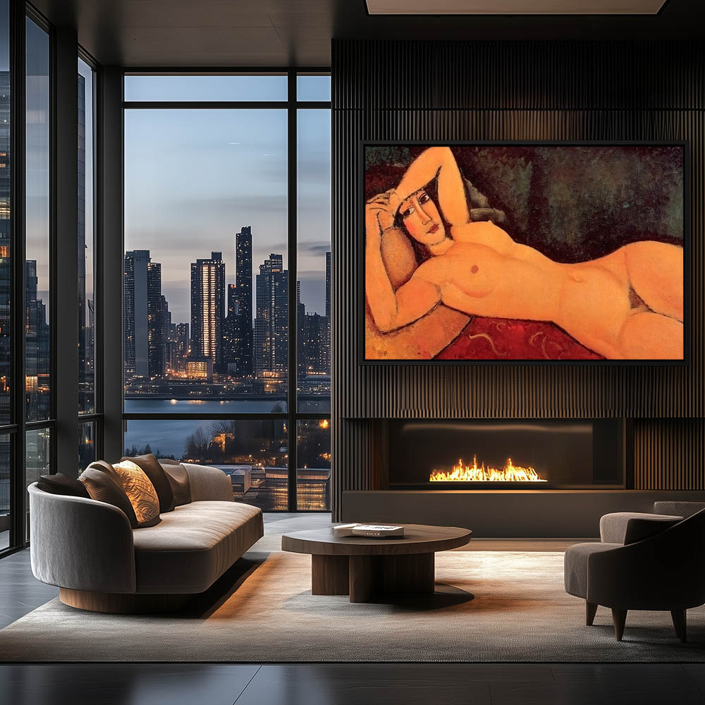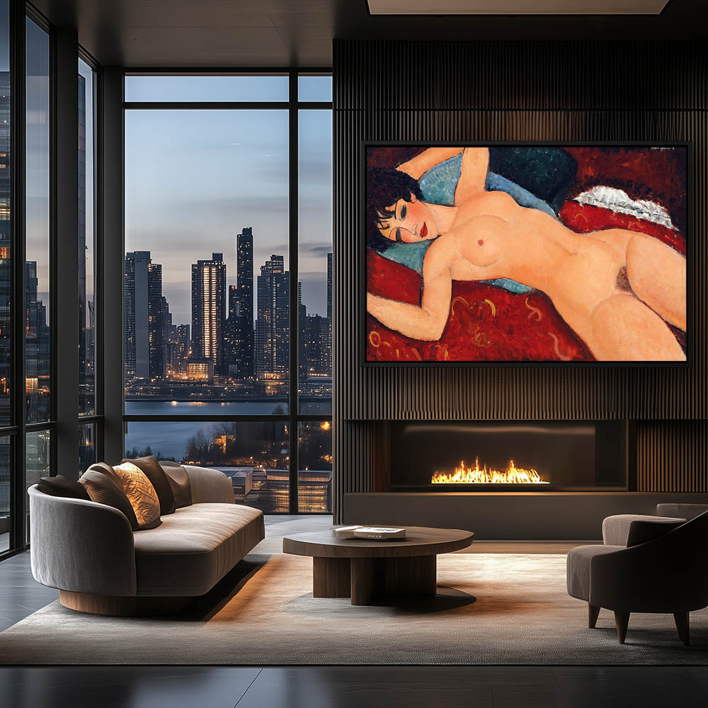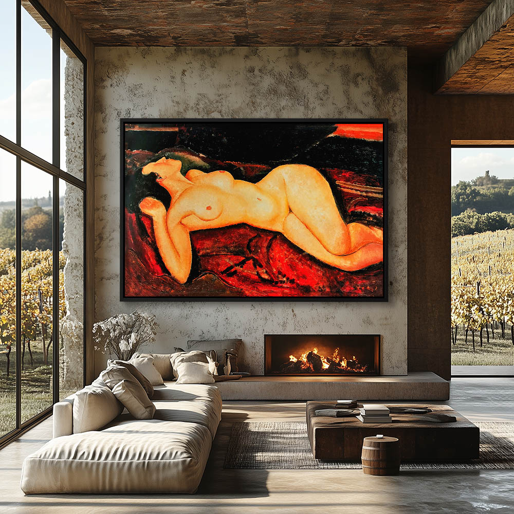 Abstract Figurative Nude Woman Reclining on a Red Sofa