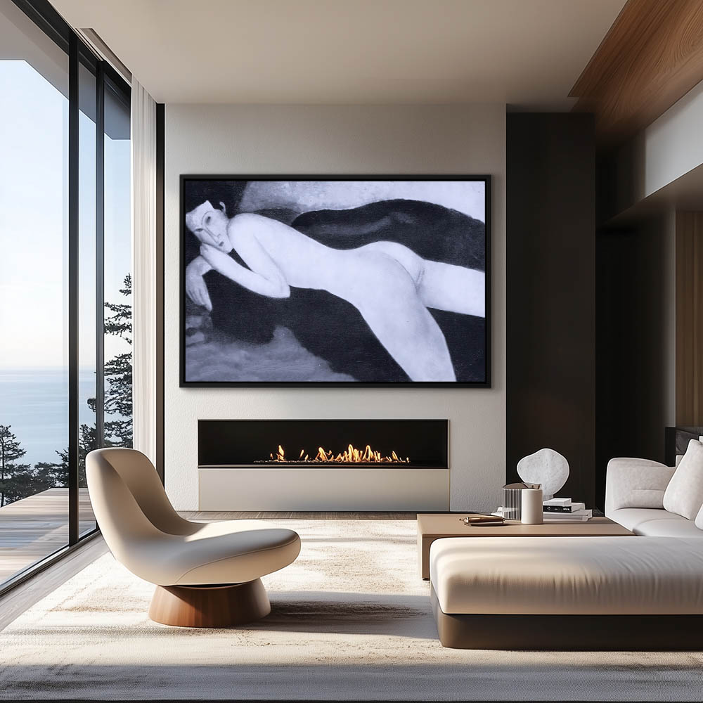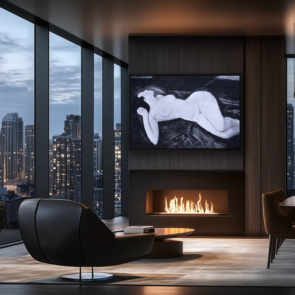 Abstract Figurative Painting of a Reclining Nude Woman in Black and White