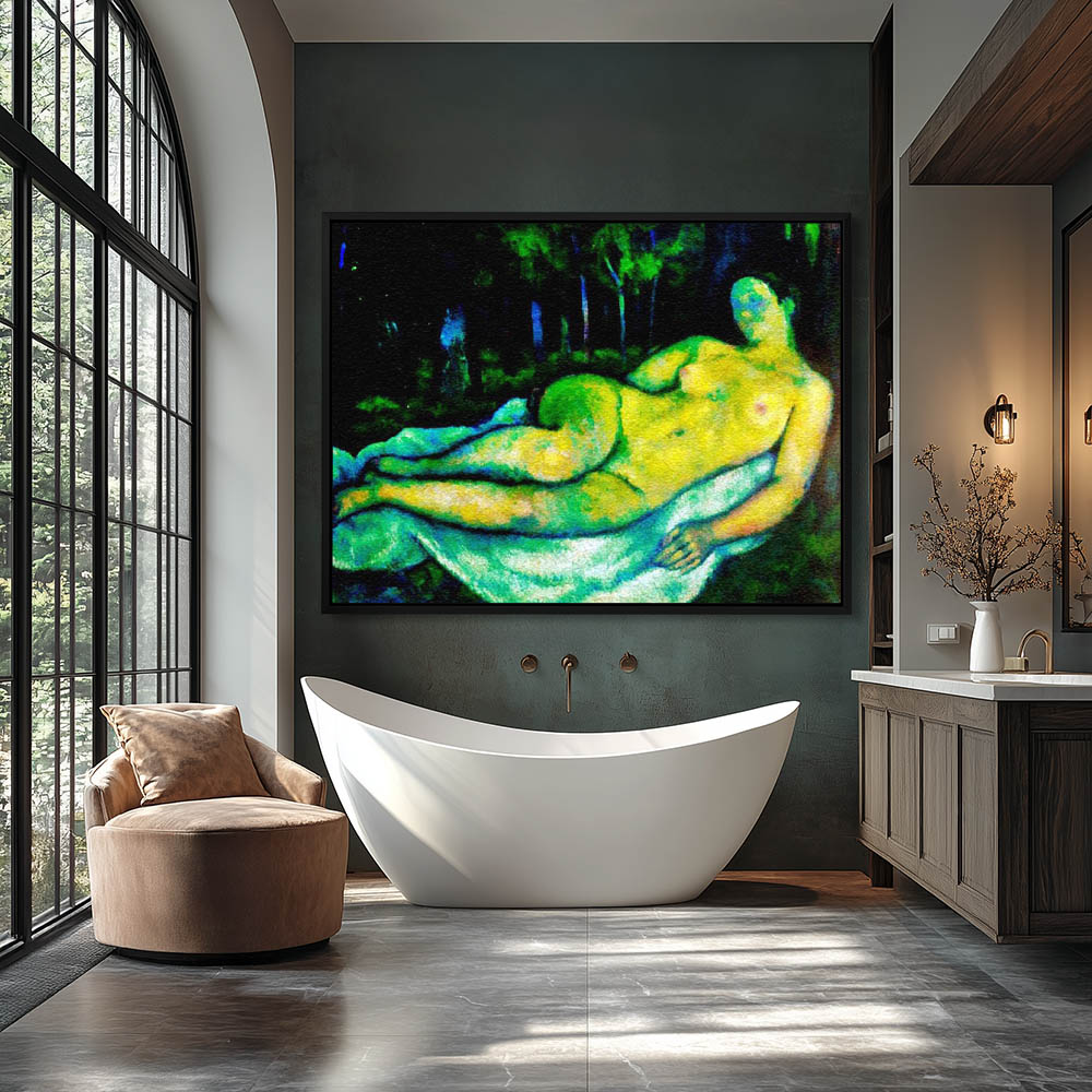 Abstract Figurative Painting of a Nude Reclining Woman in Green