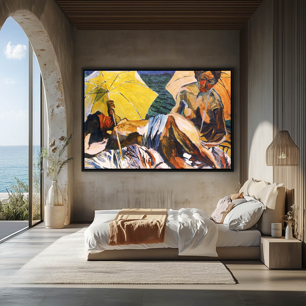 Abstract Figurative Painting with Two Nude Women on the Beach