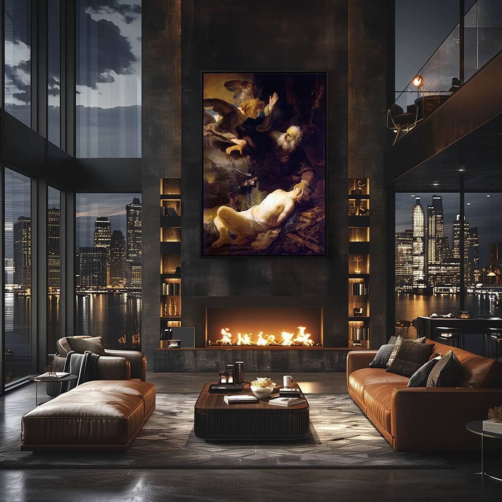 Realism Religious Painting of Abraham about to Sacrifice Issac and Angel Intervention