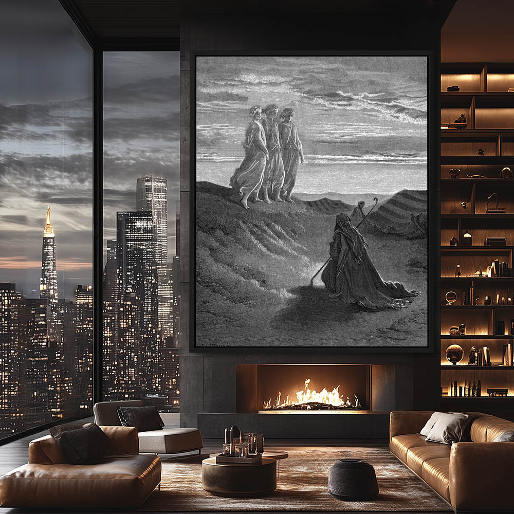Religious Drawing Depiction of Abraham Feeding the three Angels