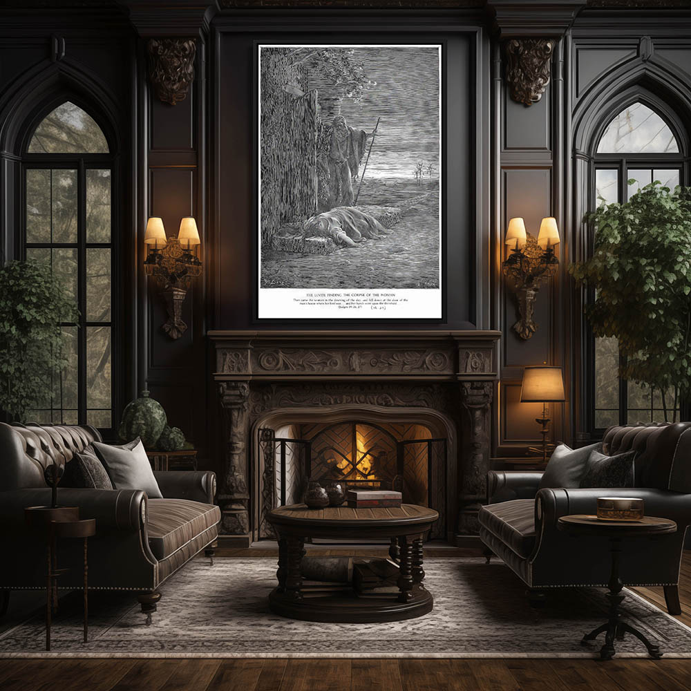 Vintage Etching of A Levite Finds a Woman’s Corpse