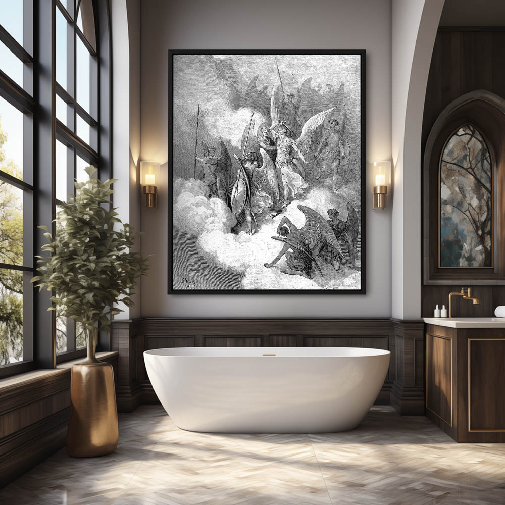 Realism Vintage Religious Painting of Abraham Serving the Angels a Biblical Story