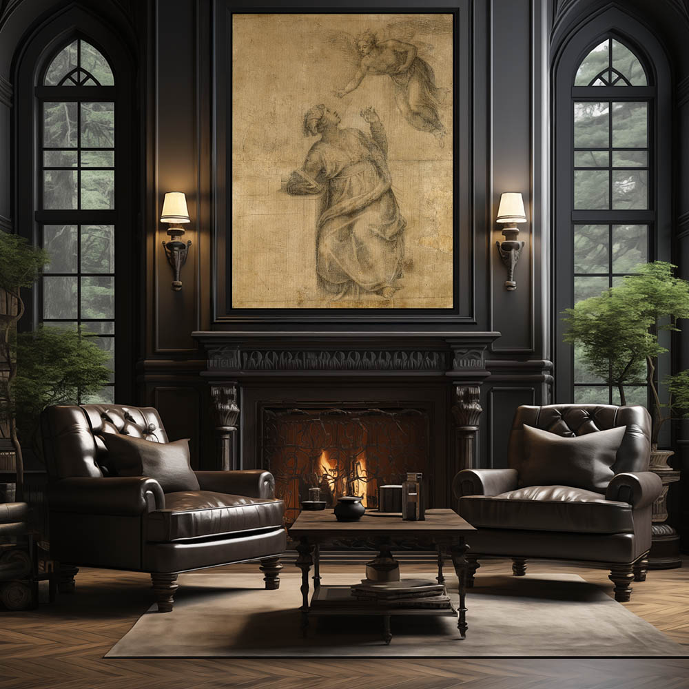 Vintage Religious Figurative Drawing of Annunciation of The Virgin