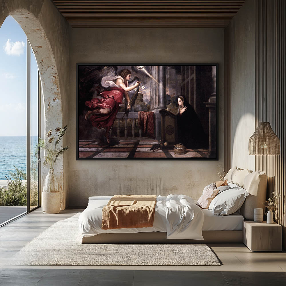 Vintage Religious Painting of The Annunciation of the Virgin