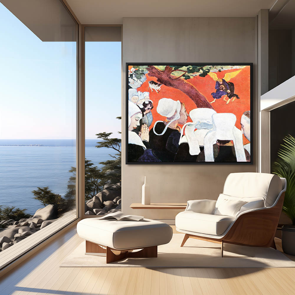 Vintage Figurative Religious Painting of Jacob Wrestling with the Angel