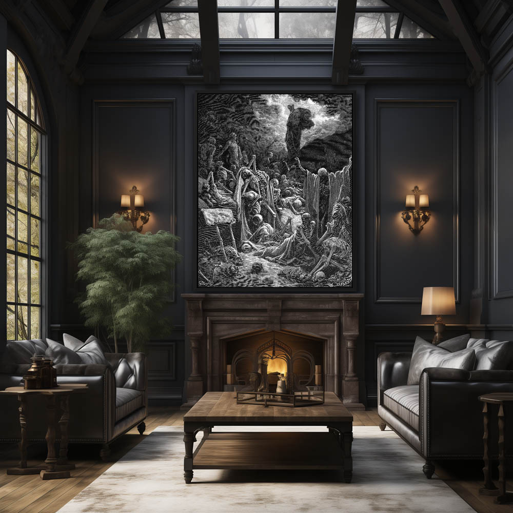 Vintage Etching of The Vision of the Valley of Dry Bones
