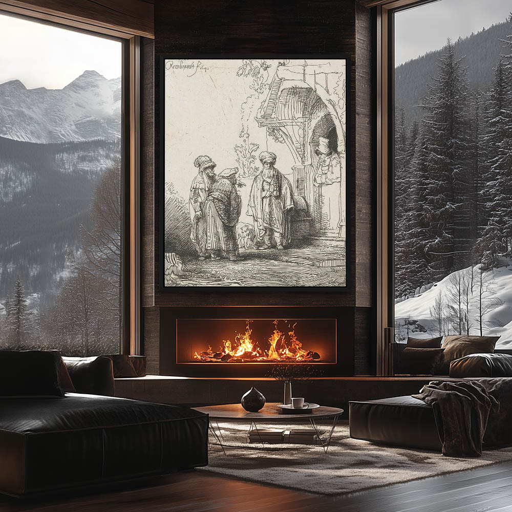 Religious Drawing of a Biblical Story with Jacob and Laban