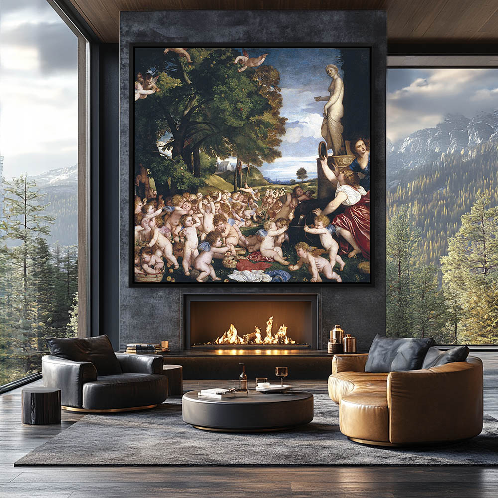 Vintage Figurative Painting of Angels