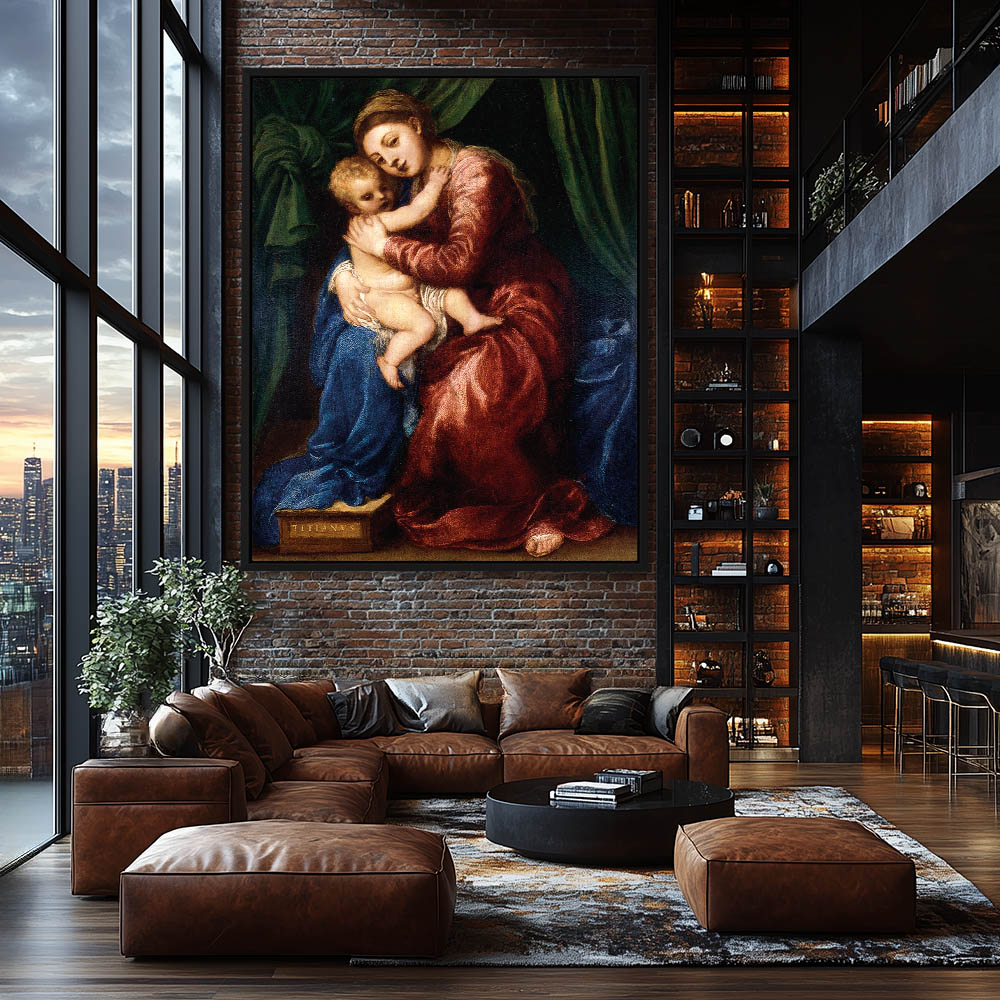 Vintage Religious Painting of The Virgin and Child