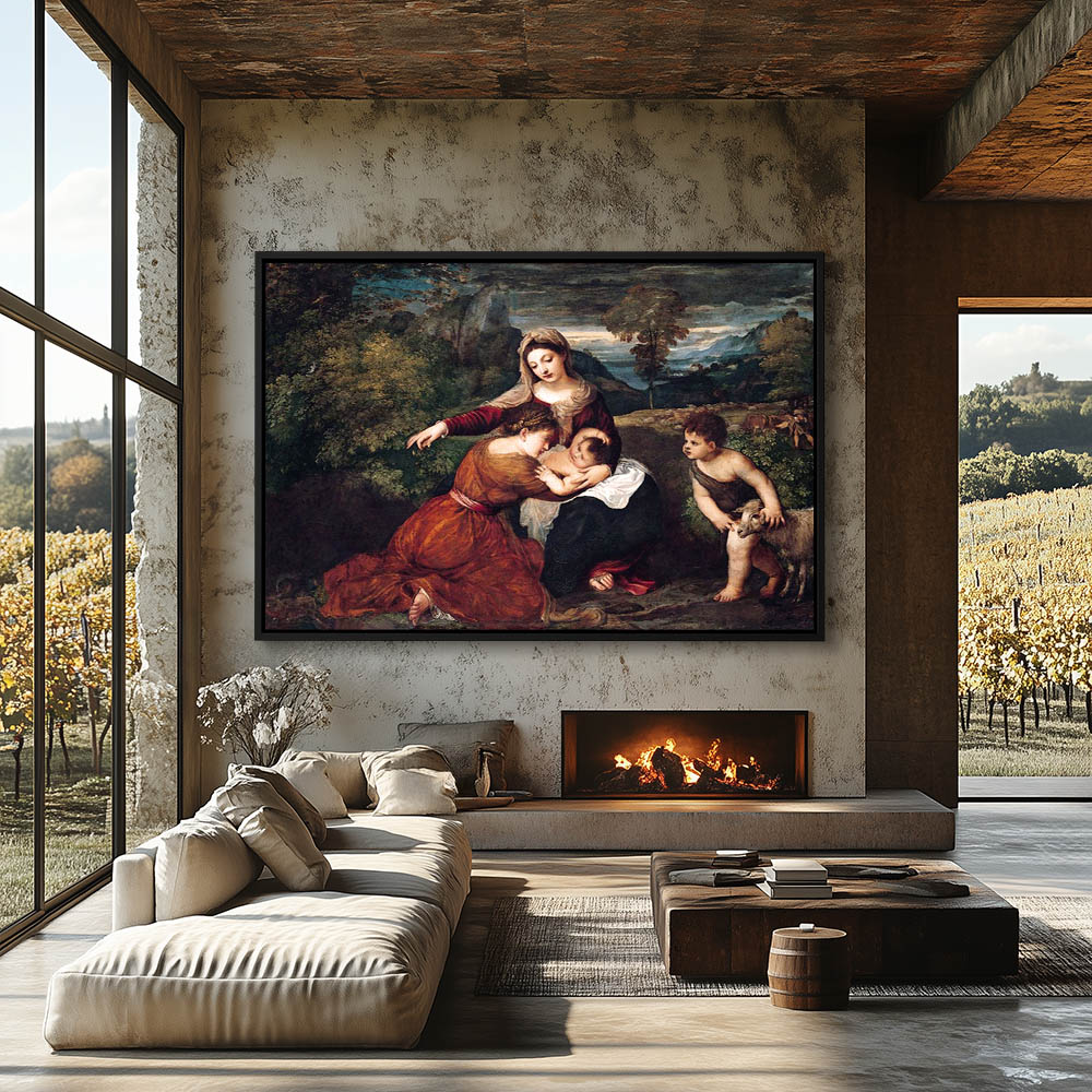 Vintage Religious Painting of The Virgin and Child and Saint Catherine and John