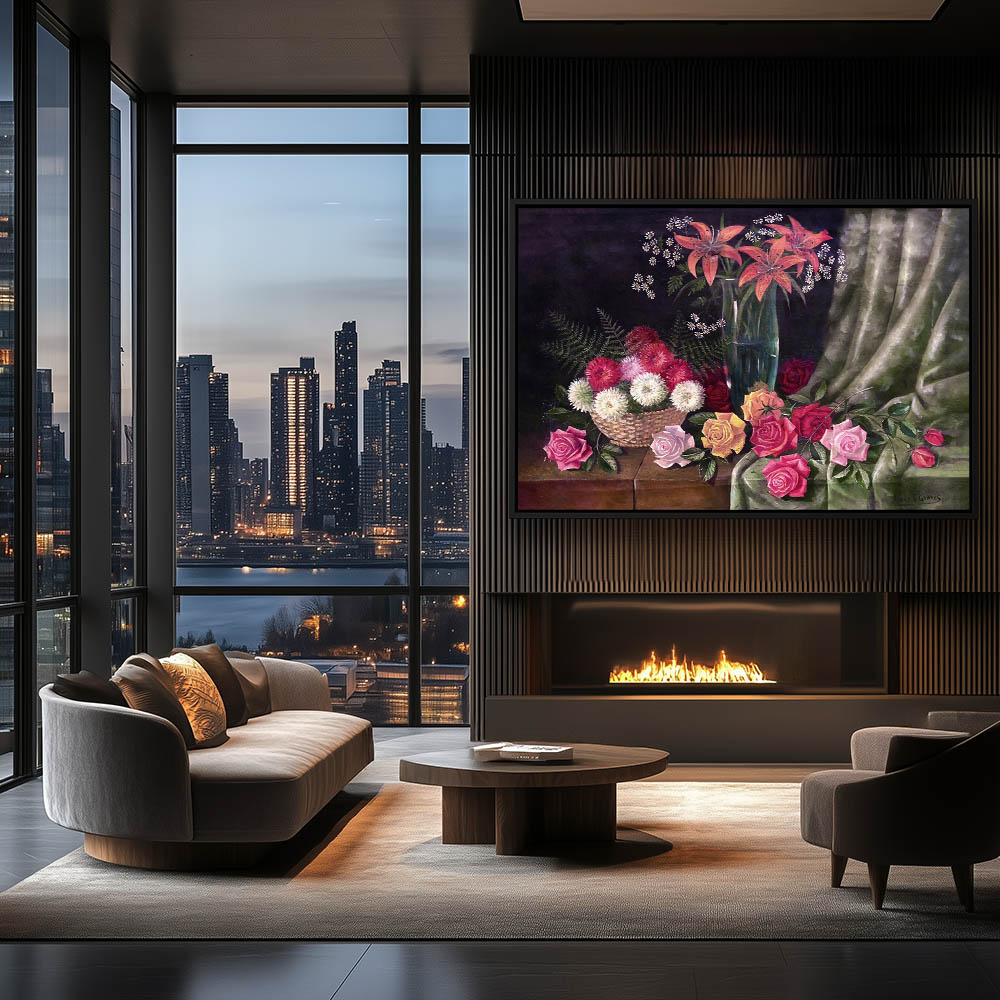 Vintage Still Life Flower Painting with Flowers on a Table