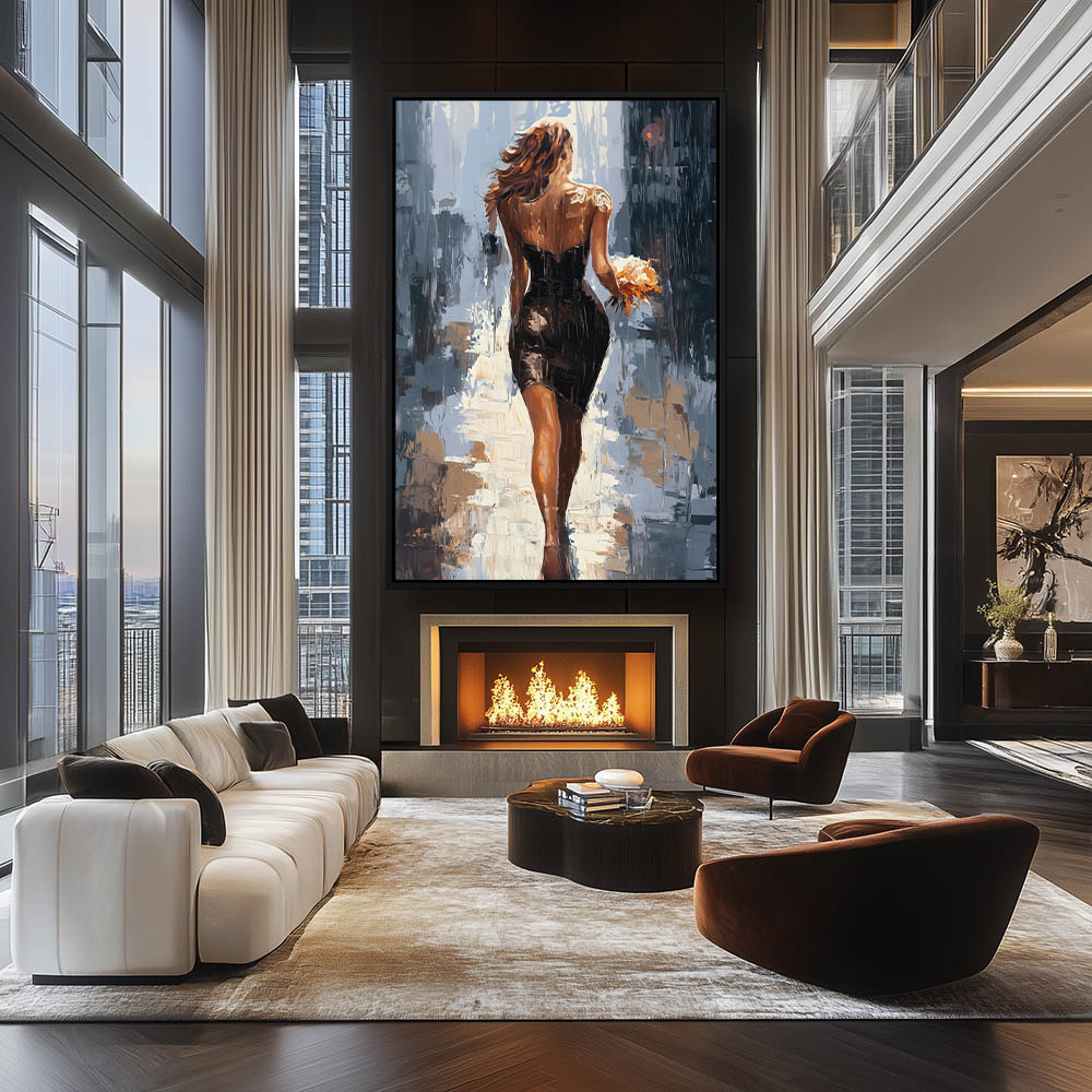 Abstract Painting of a Very Beautiful Woman Walking home in the Rain