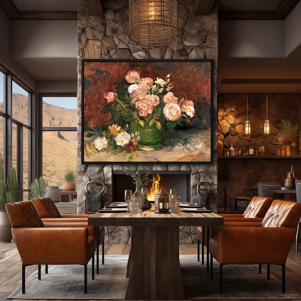 Still Life Flower Painting with Roses in a Vase