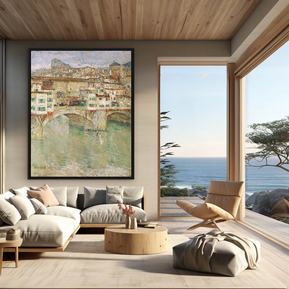 Arched bridge with and cityscape