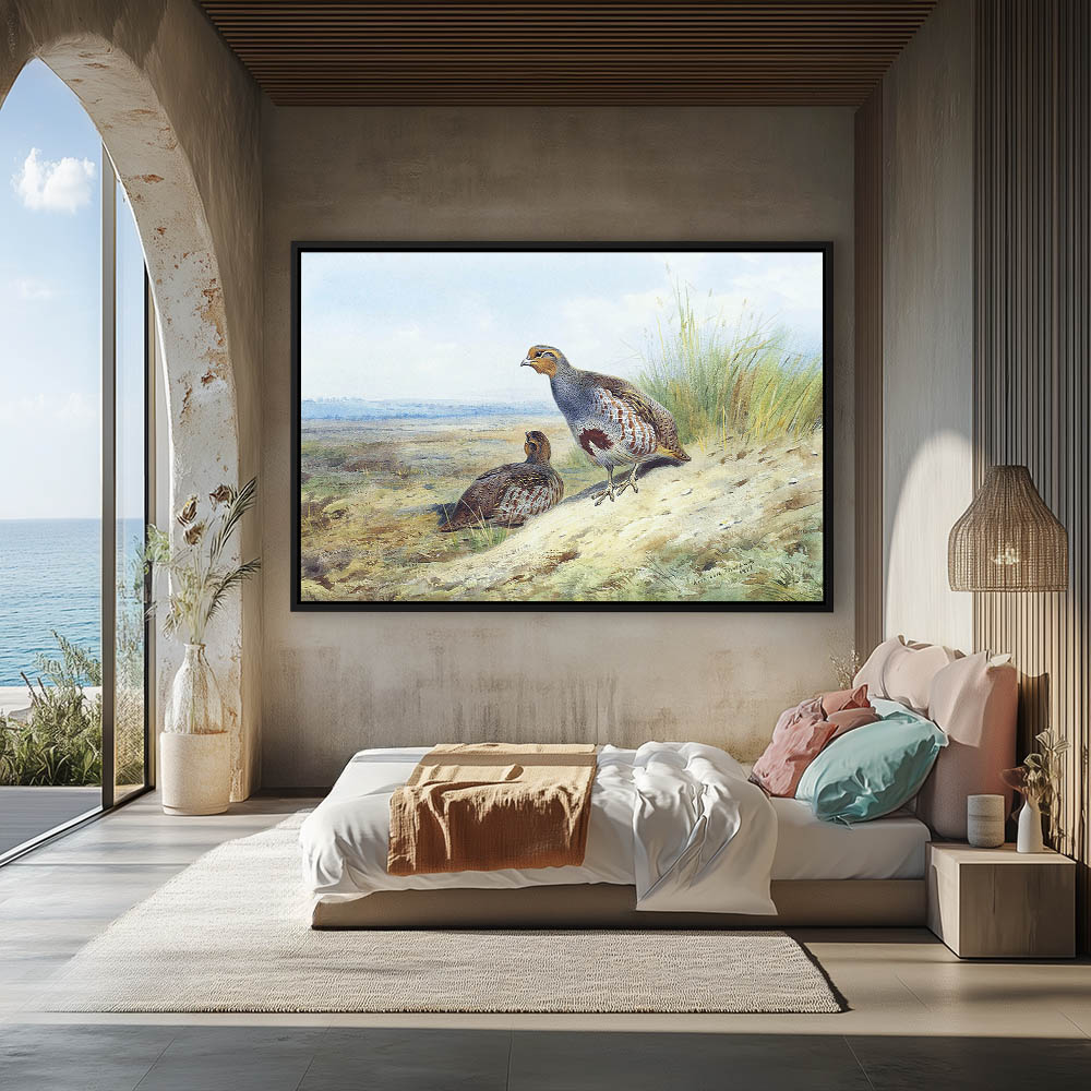 Open Landscape Painting with Gray Partridge
