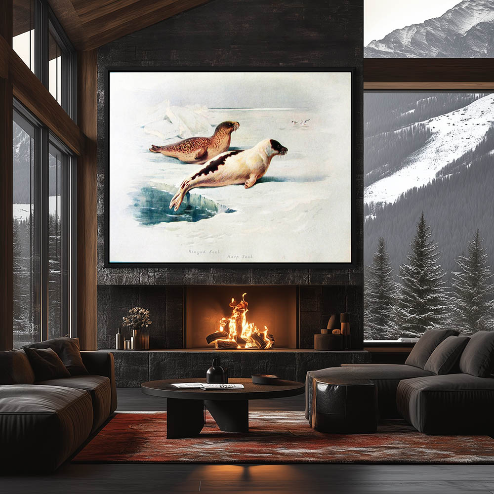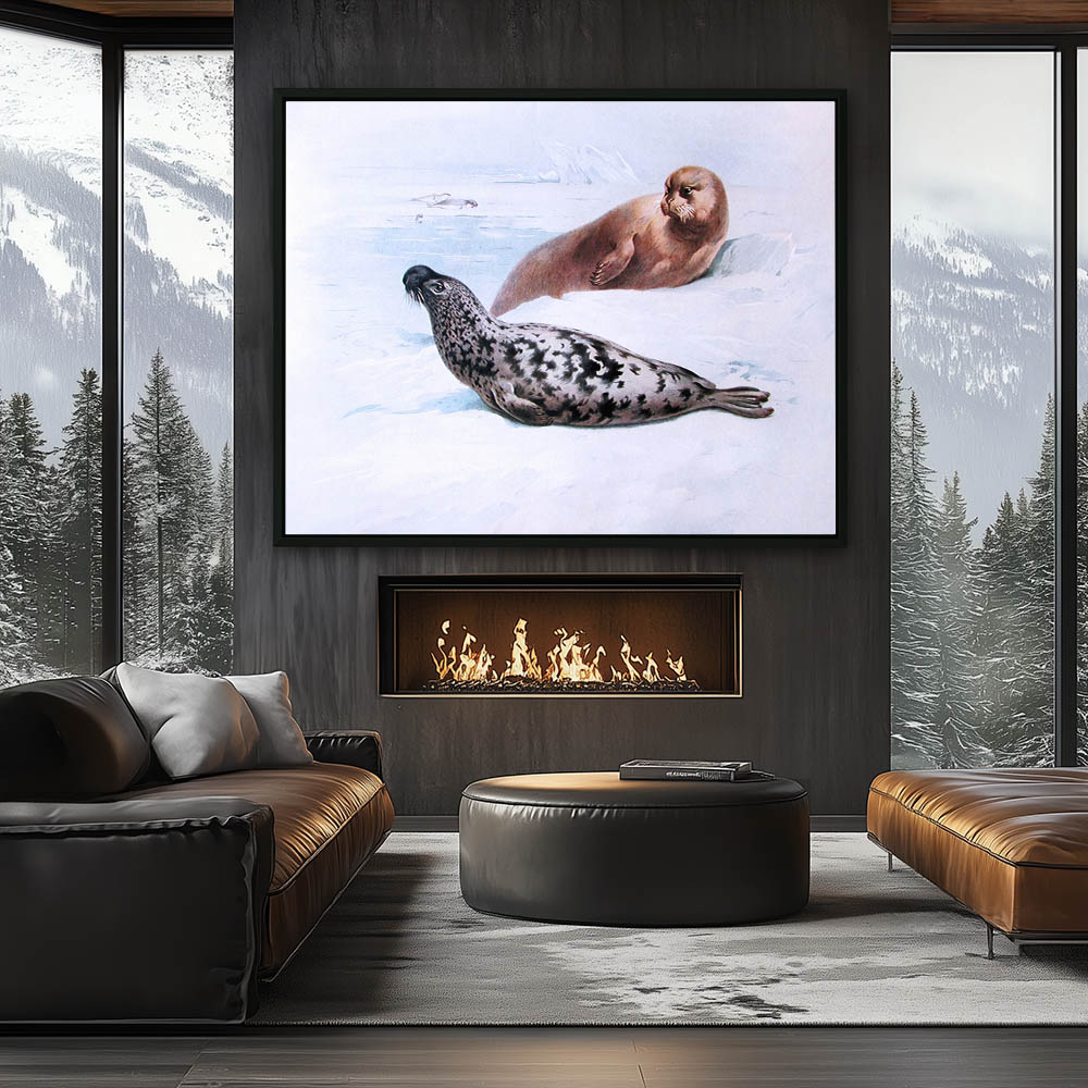 Painting of the Hooded Seal and the Bearded Seals on the Ice