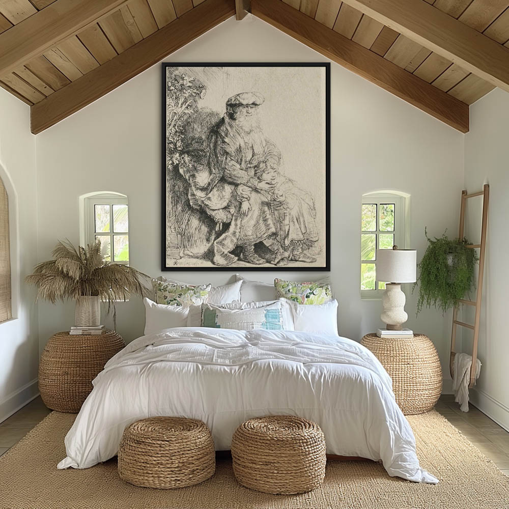 Religious Drawing Depiction of Abraham Feeding the three Angels