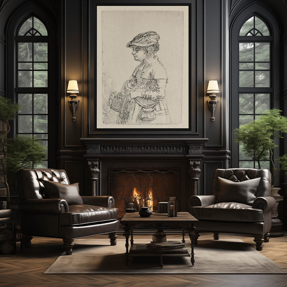 Vintage Figurative Religious Drawing of the Shepards Adoring the Virgin and Child