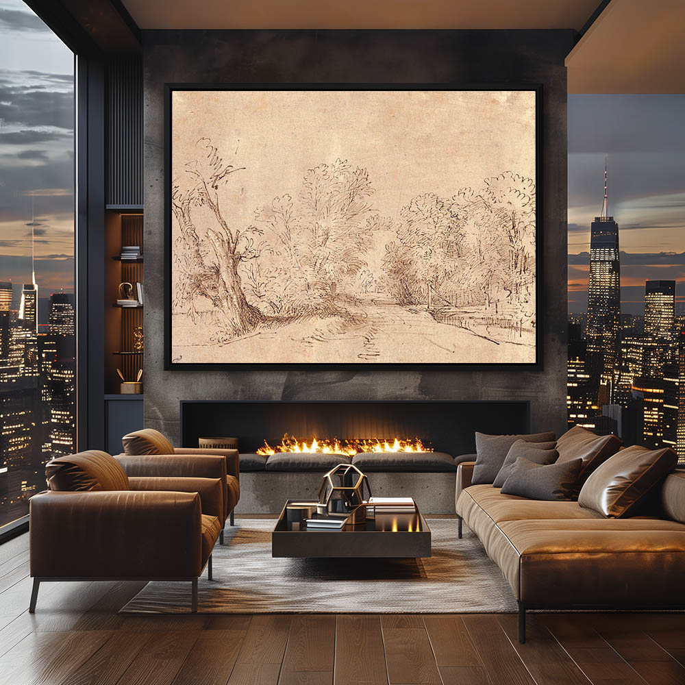 Drawing of a Landscape with a Tree Lined Road