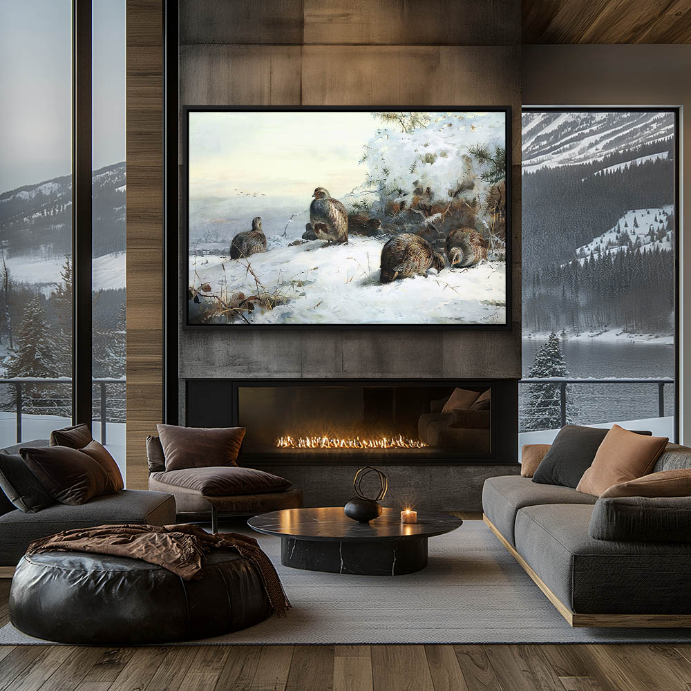 Painting of a Brace of Ptarmigan Birds in the Snow