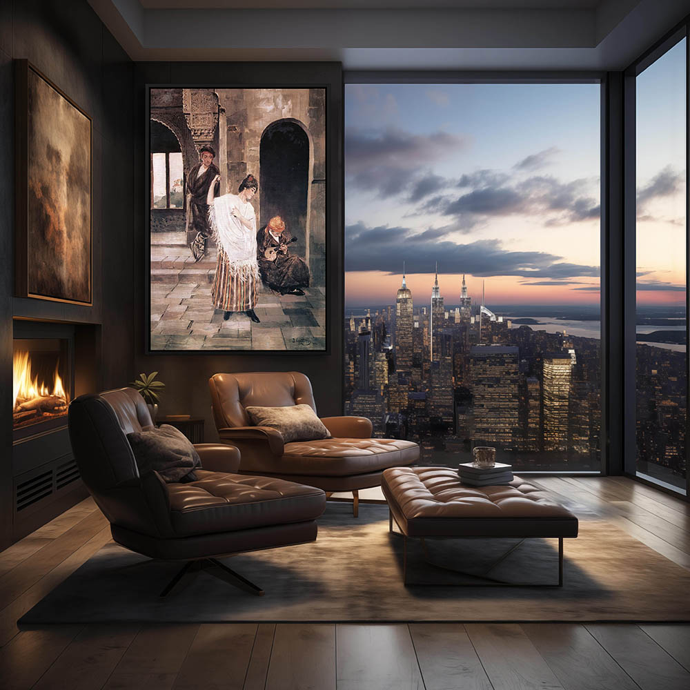 Figurative Painting of a Spanish Dancer with a Man Playing the Mandolin