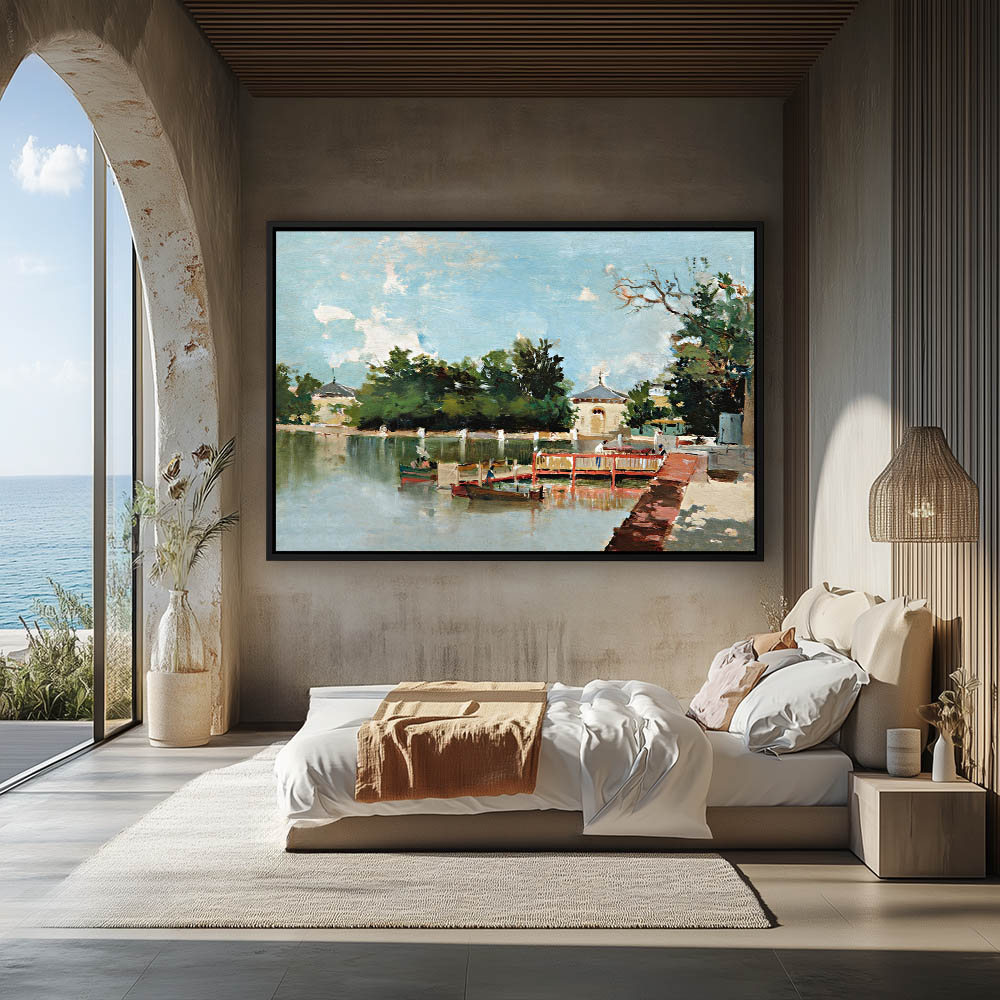 Dock and boats in a garden lake
